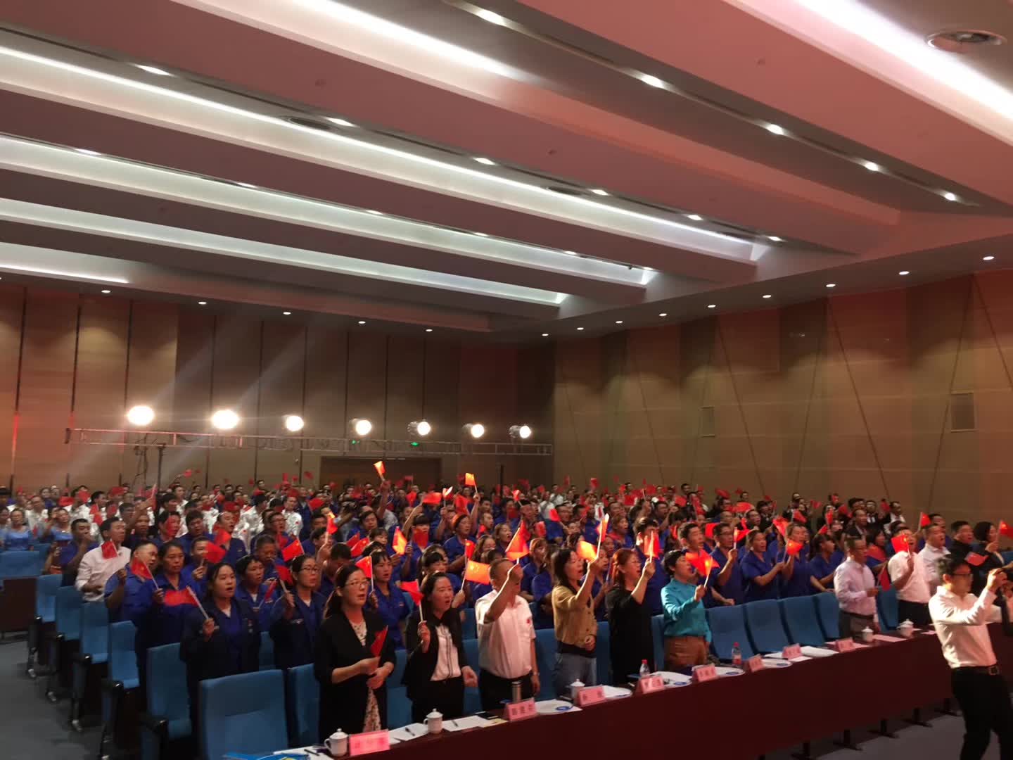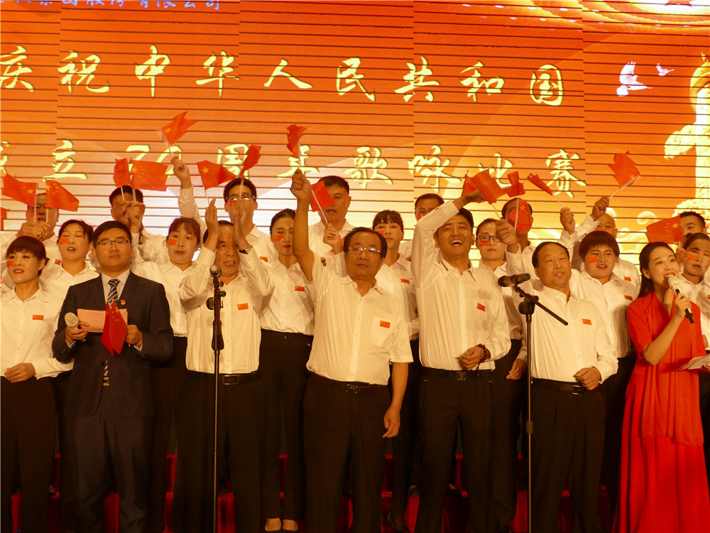 活動(dòng)在全體合唱《歌唱祖國》的歌聲中達(dá)到高潮。集團(tuán)公司主要領(lǐng)導(dǎo)登臺(tái)同全場員工舞動(dòng)起鮮艷的五星紅旗,共同歌唱祖國,歌唱美好的新時(shí)代。