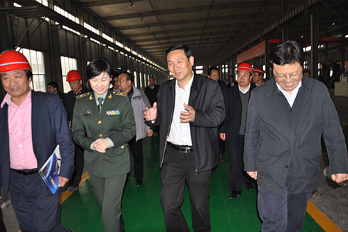 參觀期間,劉洋一行認真了解了企業(yè)的發(fā)展情況,每到一處設(shè)備前,郭現(xiàn)生董事長都會熱情地介紹設(shè)備名稱、作用等,劉洋不時點頭稱贊,參觀完重機車間,劉洋一行在車間門口與市領(lǐng)導及公司負責人合影留念。