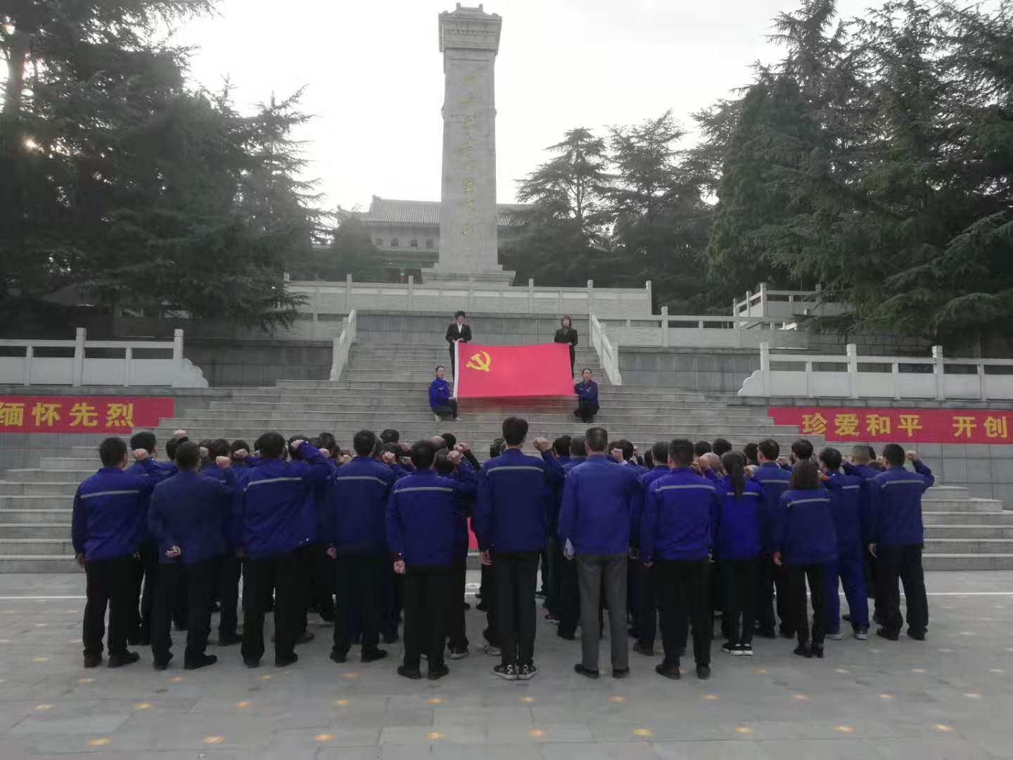 上午8:45時(shí),在雄壯的國歌聲中,全體黨員肅然起敬,仰望革 命烈士紀(jì)念碑。在莊嚴(yán)肅穆的紀(jì)念碑前,全體黨員滿懷崇敬,向革 命烈士默哀三分鐘,以表達(dá)對革 命烈士的無限哀思。隨后,全體黨員面對鮮紅的黨旗,重溫了入黨誓詞,聲聲鏗鏘有力,接受黨性再教育。
