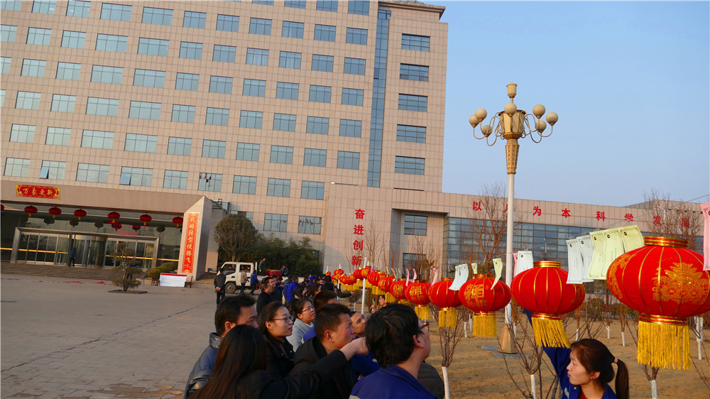 在游園結束之余,公司工會在辦公樓前廣場組織了猜燈謎活動。謎面科學而又通俗,有猜字、有成語、有人名、有地名,集趣味性、知識性于一體?;顒蝇F(xiàn)場,員工們有的獨自思考,有的三五成群共同探討,紛紛發(fā)表自己的見解,猜燈謎現(xiàn)場熱情高漲。公司領導們也專門抽出時間與大家一起參與互動。經(jīng)過大家冥思苦想,一條條謎底被紛紛揭下來,大家分別拿著各自的獎品,笑逐顏開。