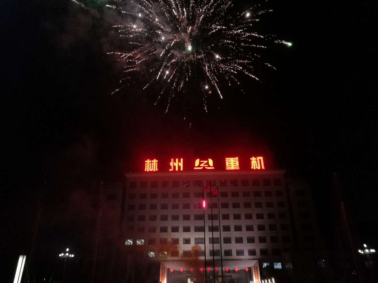 晚上7點,公司在辦公樓前舉行焰火晚會。煙花在空中一朵朵綻放,瞬間黑夜的上空變成了煙花的海洋,紅的,藍的,黃的,五顏六色,絢麗多彩,美麗至極!