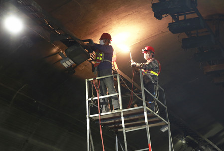 當(dāng)天工程主要是進行燈具、風(fēng)機、布管線、火報、廣播、攝像頭控制箱的安裝,接線調(diào)試,瓷磚修補,洞壁注漿、地面病害處置、垃圾清理等。據(jù)悉,截止當(dāng)天晚上10:30,隧道內(nèi)燈具、風(fēng)機已全部安裝完畢,黃土嶺隧道群整治已完成總工程量的60%。