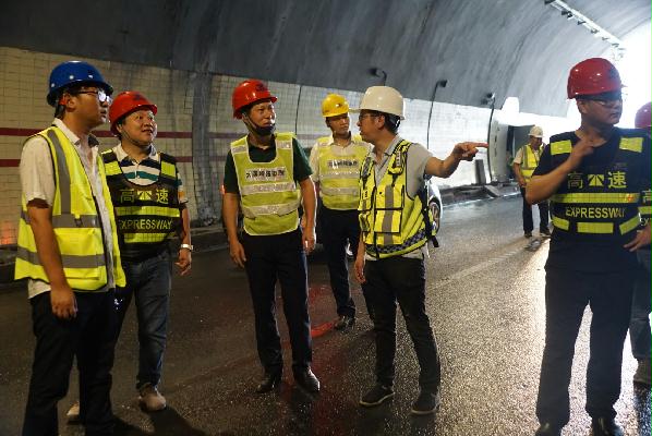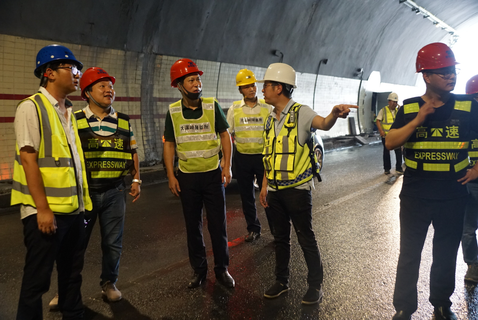 圖為驗收小組正在對隧道進(jìn)行初步驗收