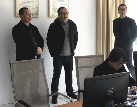 圖為集團(tuán)副總經(jīng)理章海峰一行在監(jiān)控室檢查監(jiān)控設(shè)備