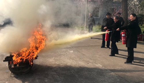 圖為滅火器使用模擬演練現(xiàn)場 “保險栓要先打開?!?/span> “用前記得搖一搖。” “不要怕,對準火源再噴,別急?!?/span> 隨后,該所開展滅火器使用模擬演練。在演練中,大家利用平時更換下來的舊滅火器,依次輪流進行操作,更有一些老員工主動熱心幫助新員工講解如何正確使用滅火器,以身示范正確操作方式及每一個分解動作要領。