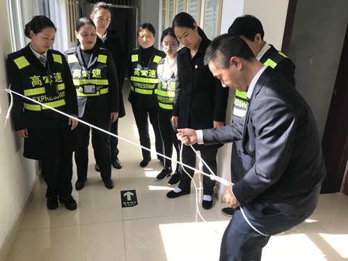 圖為演練現(xiàn)場(chǎng) 隨著所長(zhǎng)孫明偉提問(wèn)式的開(kāi)場(chǎng)白,近日,臨海南收費(fèi)所以班組為單位,分四天集中開(kāi)展全員逃生繩演練活動(dòng)。全所員工積極參與、親身體驗(yàn),活動(dòng)達(dá)到預(yù)期效果。 整個(gè)演練過(guò)程中,培訓(xùn)人員詳細(xì)講解了打繩結(jié)的方法與注意要點(diǎn),現(xiàn)場(chǎng)氣氛踴躍。通過(guò)開(kāi)展此次活動(dòng),本所員工不僅掌握了逃生繩的使用方法,提高了高層逃生自救能力,而且進(jìn)一步提高了面對(duì)突發(fā)火情的應(yīng)對(duì)能力,增強(qiáng)了“防火防災(zāi)”的安全意識(shí)。 陳瑩