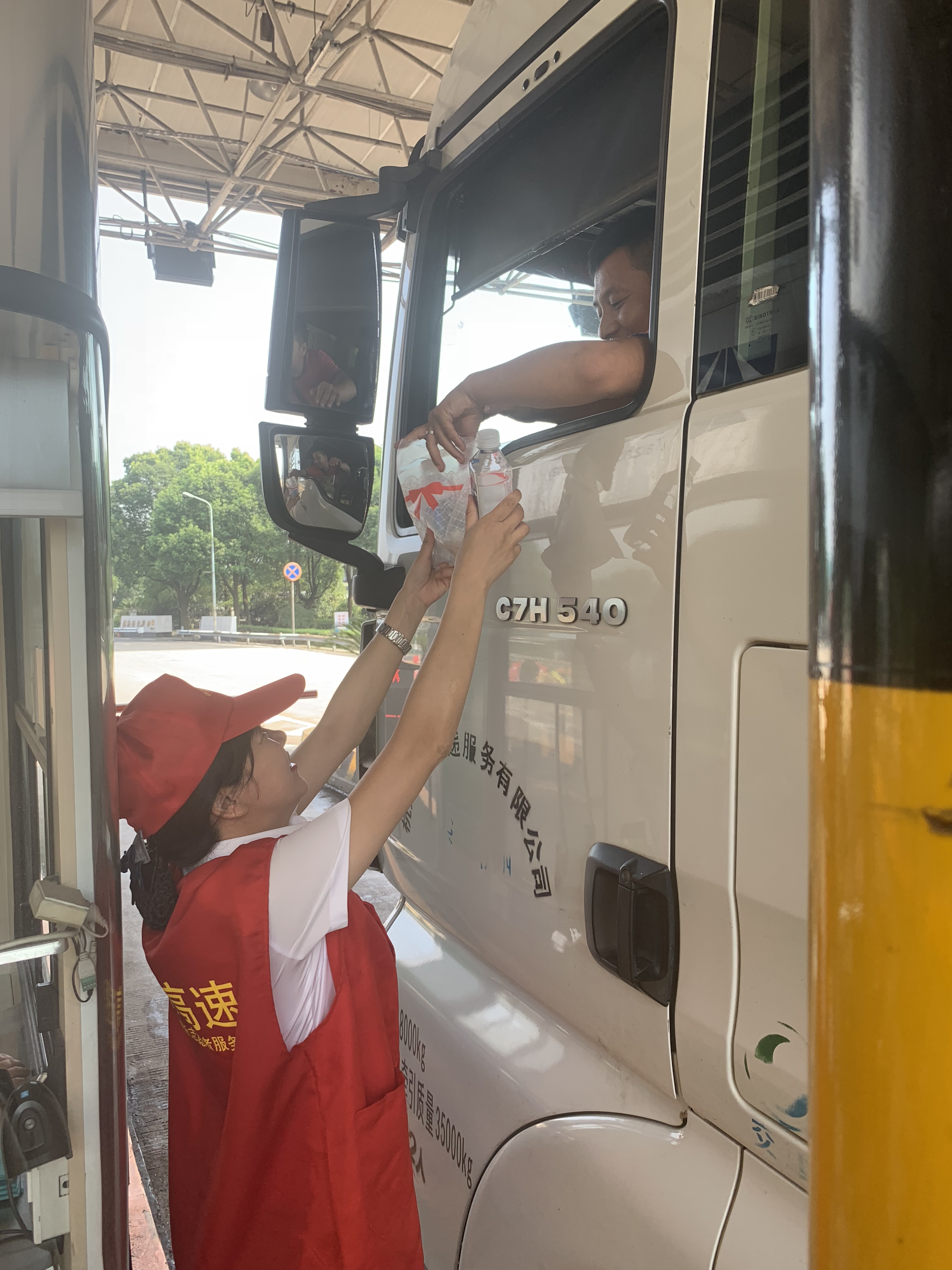 服務(wù)在崗,情系災(zāi)區(qū) ——臨海南收費(fèi)所組織開展“獻(xiàn)愛心”活動(dòng) 8月14日中午,臨海南收費(fèi)所車道安全島內(nèi)搭起臨時(shí)愛心服務(wù)臺(tái),準(zhǔn)備了禮品袋、礦泉水、風(fēng)油精、人丹等物品,為過往司乘人員免費(fèi)提供解暑用品。 高溫天氣中,該所員工身穿耀眼的“紅馬甲”,面帶微笑,顯得格外耀眼動(dòng)人。