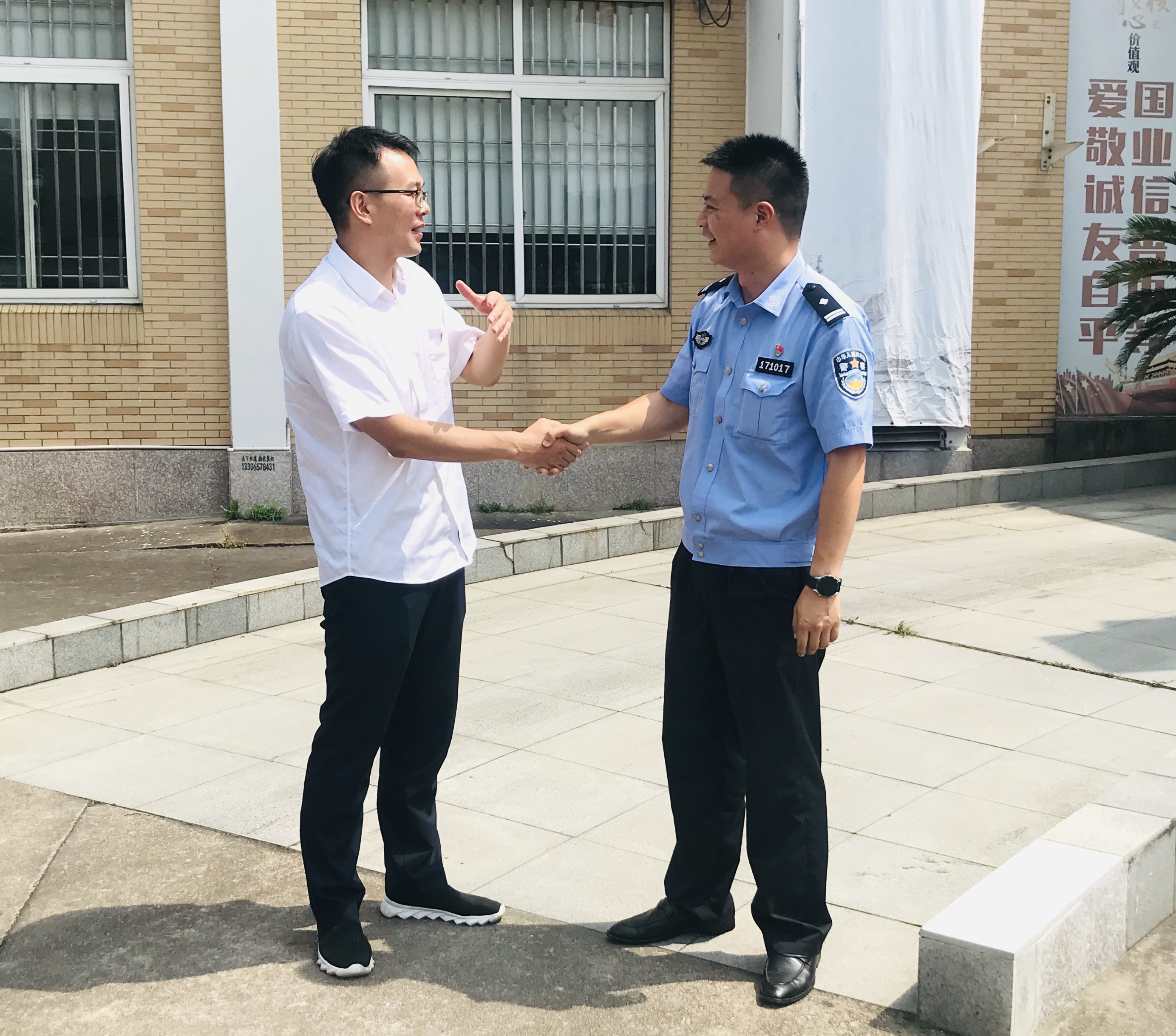 炎炎夏日送清涼 警民合作一家親 7月15日上午,臨海南收費(fèi)所所長(zhǎng)孫明偉帶隊(duì)到沿江派出所送清涼,向堅(jiān)守一線的民警們送上誠(chéng)摯的關(guān)懷,感謝他們對(duì)臨海南高速公路所做的貢獻(xiàn)。