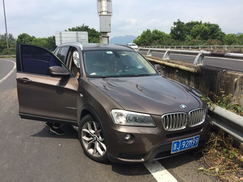 8月13日上午10:30分左右,臺州收費所出口寧向匝道口有一輛黑色寶馬X3斜靠在護欄旁,其車頭左側(cè)因碰撞護欄而嚴重凹陷,左前輪胎報廢。 當時,該所出口五號車道的欄桿發(fā)生故障,需要暫時關(guān)閉進行維修。班長張海勇在內(nèi)廣場引導車輛時發(fā)現(xiàn)此起事故,走近細看,由于碰撞激烈該車前檔玻璃破裂,前排安全氣囊彈出,而車旁的兩個人驚恐未定不知所措。此時匝道口車流不斷,因駕駛員遲遲找不到三角牌,為避免二次事故的發(fā)生,張海勇在車后方指揮交通,并提醒車旁人員站在護欄外安全位置,同時報告指揮中心事故車的位置和損傷情況。