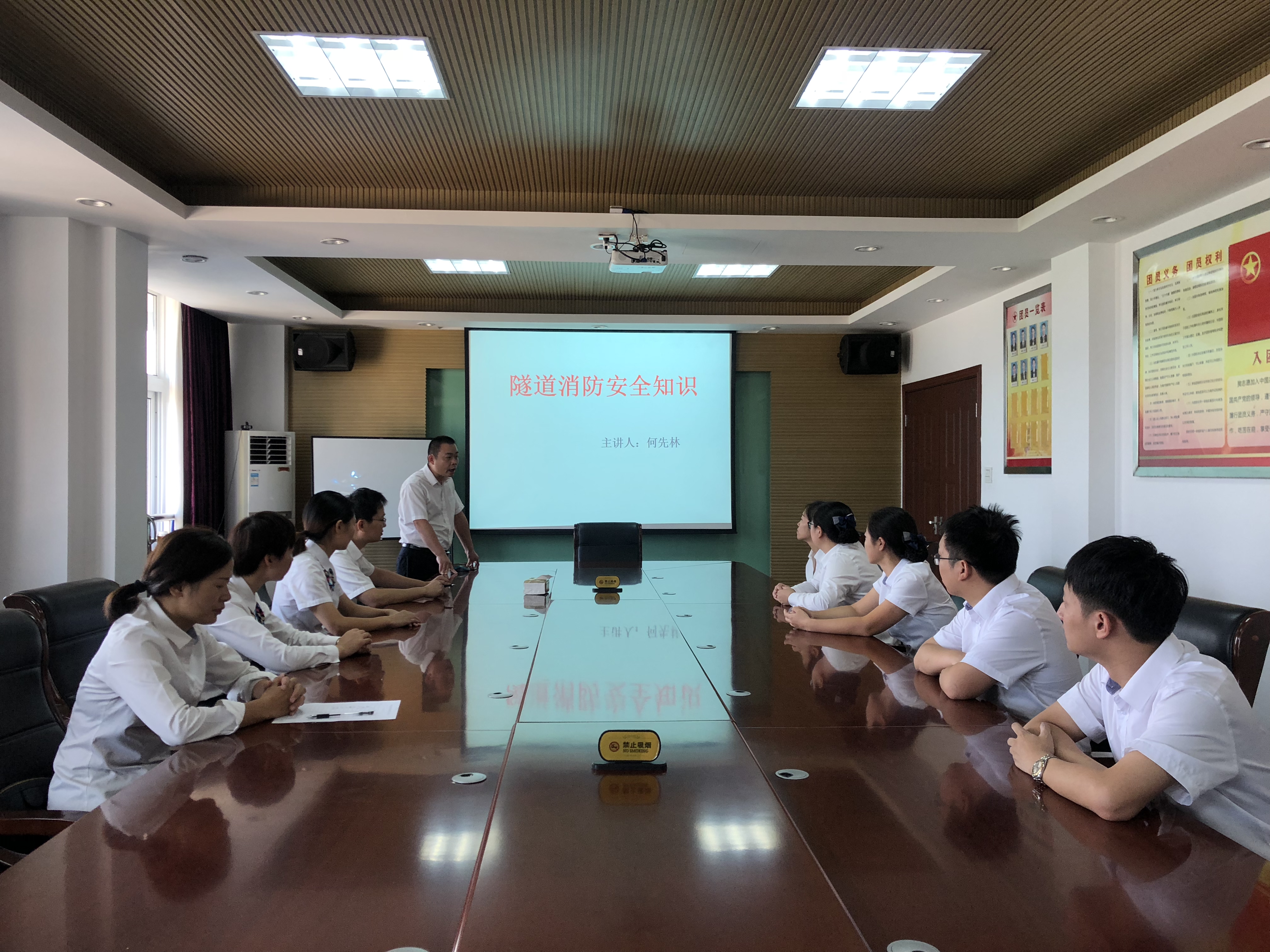 關(guān)注消防 平安你我 臺(tái)州收費(fèi)所開展隧道消防安全知識(shí)培訓(xùn) 為提高員工火災(zāi)救援能力增強(qiáng)員工隧道防火意識(shí),9月26日上午,臺(tái)州收費(fèi)所組織員工開展隧道消防安全知識(shí)培訓(xùn)。此次培訓(xùn)由該所副所長(zhǎng)何先林主講。行政人員、征費(fèi)班組人員參加培訓(xùn)。