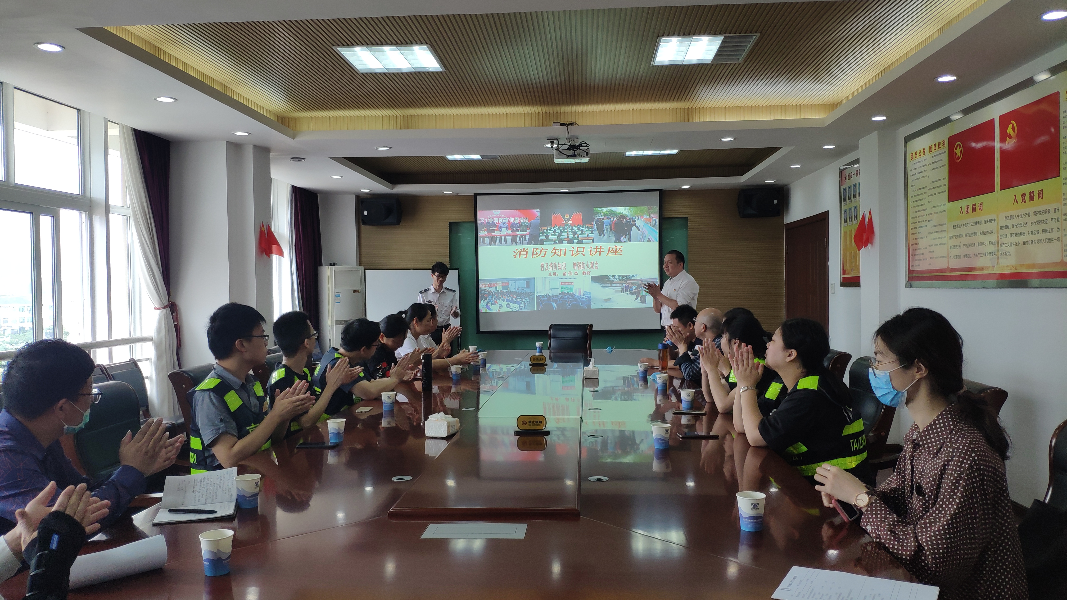 圖為消防安全知識培訓(xùn)現(xiàn)場 培訓(xùn)現(xiàn)場,來自六進(jìn)消防的俞教官結(jié)合近年來發(fā)生的典型火災(zāi)案例,將消防知識與工作生活緊密聯(lián)系起來,深入淺出地向大家講解了消防知識、火災(zāi)發(fā)生原因、如何滅火及逃生技能等基本常識。俞教官提醒大家在火災(zāi)逃生的過程中必須牢記要用濕毛巾捂住鼻子,防煙熏,還要避開火勢,果斷迅速逃離火場。