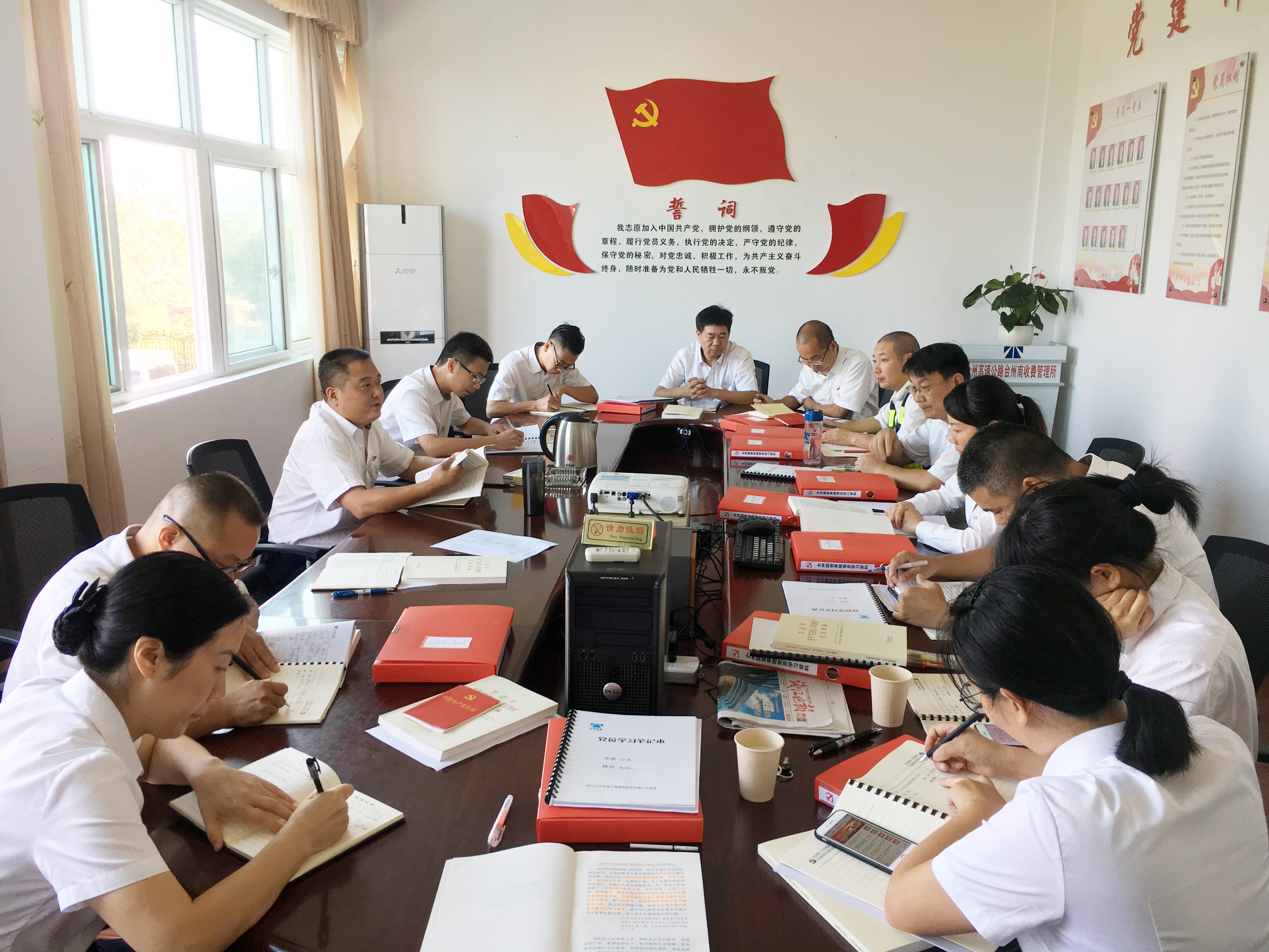臺(tái)州南收費(fèi)所黨支部開展“我是黨員我?guī)ь^”大討論 9月29日上午,臺(tái)州南收費(fèi)所黨支部組織全體黨員開展“我是黨員我?guī)ь^”大討論活動(dòng)。