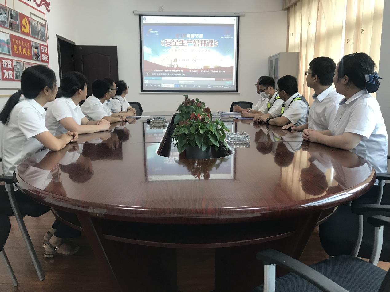 圖為集中觀看安全視頻 該所組織收費(fèi)所員工積極參與市級(jí)安全隱患有獎(jiǎng)隨手拍網(wǎng)絡(luò)活動(dòng);集中組織收看《臺(tái)州市公共安全教育館安全體驗(yàn)線上直播活動(dòng)暨安全生產(chǎn)公開課》;充分發(fā)揮廣大員工參與安全生產(chǎn)的積極性,為公司安全發(fā)展集思廣益、建言獻(xiàn)策,開展“查安全隱患、提合理化建議”活動(dòng);組織收費(fèi)所員工參與以全國(guó)“安全生產(chǎn)月”官網(wǎng)平臺(tái)開展的知識(shí)競(jìng)賽答題活動(dòng),學(xué)習(xí)安全法律法規(guī),普及安全常識(shí),提高員工安全生產(chǎn)意識(shí)和能力;在管理所張貼宣傳畫、懸掛安全宣傳標(biāo)語橫幅,利用可變情報(bào)板滾動(dòng)播放“安全生產(chǎn)月”活動(dòng)主題和宣傳標(biāo)語,發(fā)揮宣傳欄、微信平臺(tái)作用,大力營(yíng)造“消除事故隱患,筑牢安全防線”的主題氛圍。