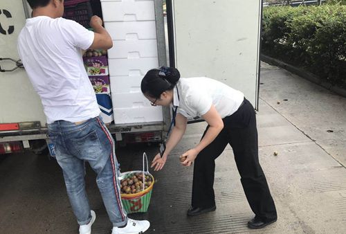 圖為工作人員幫司機(jī)撿李子 一個(gè)個(gè)李子雖小,卻很調(diào)皮。有的滾到了欄桿前,有的溜到了車道的狹縫里,有的甚至逃到了車底下,收費(fèi)員鄭維見狀,立馬彎腰撿李子,又迅速跑到欄桿前,很靈活地抓起了好幾個(gè)李子。狹縫里都是沖洗車道留下來的臟水,鄭維又毫不猶豫地將手伸向臟水里撿李子,再拿到水龍頭前沖洗一番后放回到司機(jī)的籃子里。一來一回好幾趟,原本平日里就怕熱的鄭維早已滿身大汗,此時(shí)她卻全然不顧。