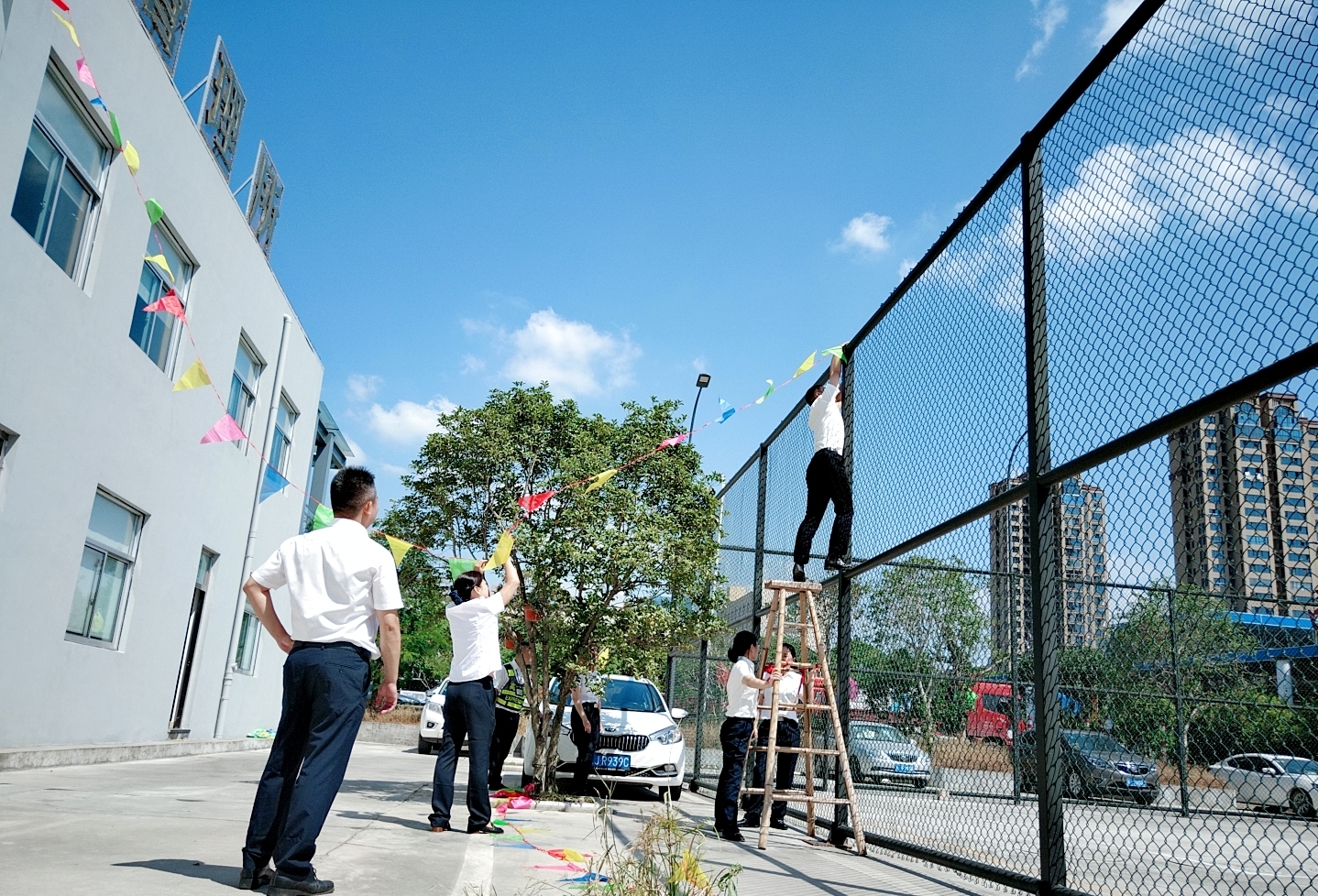 圖為工作人員一起布置收費所 在慶祝祖國70周年生日的日子里,最火的顏色就是紅色。為了弘揚中華民族傳統文化,溫嶺西收費所后勤組早早購置了燈籠、彩旗、五星紅旗,寫好“慶祝祖國70周年華誕”大字等。黨員帶頭,團員緊跟,一線收費員紛紛參與,在收費站大門口、辦公樓、食堂、宿舍等區(qū)域精心用五星紅旗、大紅燈籠、五顏六色的彩旗裝點,一抹抹艷麗的國旗紅,成為站點最靚麗的風景。明亮的黃、鮮艷的紅,美麗窗口突然亮了起來,到處洋溢著濃濃的國慶氛圍,為過往司乘提供暢、潔、美的節(jié)日行車環(huán)境。 溫嶺西收費所后勤組還精心策劃、精細編排,制作了具有特色、獨具創(chuàng)意的生日祝福“小視頻”,祝祖國生日快樂! 通過開展弘揚愛國精神,喜迎國慶活動,溫嶺西收費所全所工作人員更加不忘初心,砥礪前行,共同慶祝祖國70周年華誕。 鄭霞霞