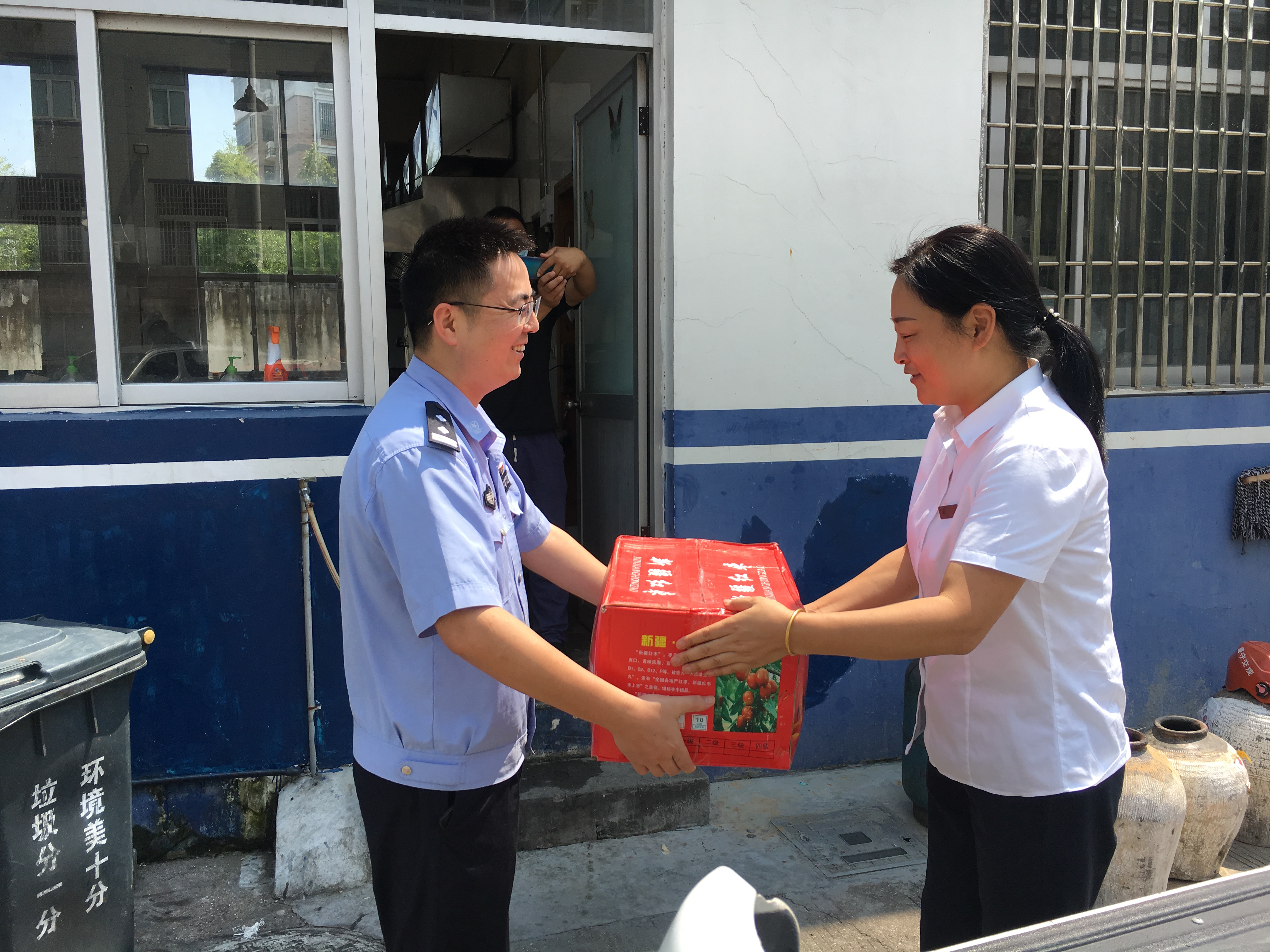 圖為楊瑩瑩給民警送上清涼物資 連日來,全市持續(xù)高溫,熱浪滾滾,進(jìn)入酷暑“燒烤”模式,高溫烈日下,廣大民警、輔警舍小家、顧大家,堅守在一線崗位上,楊瑩瑩囑托民警、輔警們在高溫天氣執(zhí)勤中一定要注意身體。 大溪派出所所長代表全體民警對臺州高速溫嶺西收費所的慰問表示感謝,同時表示所將一如既往做好本職工作,不負(fù)期望,在今后的工作中再接再厲,為營造更加和諧、穩(wěn)定的社會環(huán)境繼續(xù)努力。 鄭霞霞