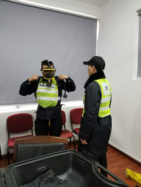 培訓(xùn)中,陶文輝講解了“高速隧道火災(zāi)特點(diǎn)”及呼吸器、防化服的使用方法及相關(guān)要求。話題開(kāi)啟后,隊(duì)員們紛紛參與討論,爭(zhēng)相發(fā)言,講述各自在隧道事故處理中施救和應(yīng)對(duì)的經(jīng)歷與心得,交流平日巡查中所需注意的事項(xiàng),互相提醒工作中的不足,并針對(duì)實(shí)際問(wèn)題提出了許多建設(shè)性意見(jiàn)。同時(shí),在主講人的現(xiàn)場(chǎng)演示下,參訓(xùn)人員逐個(gè)“以身試法”,進(jìn)一步熟悉和掌握了防毒面罩的穿戴方法。