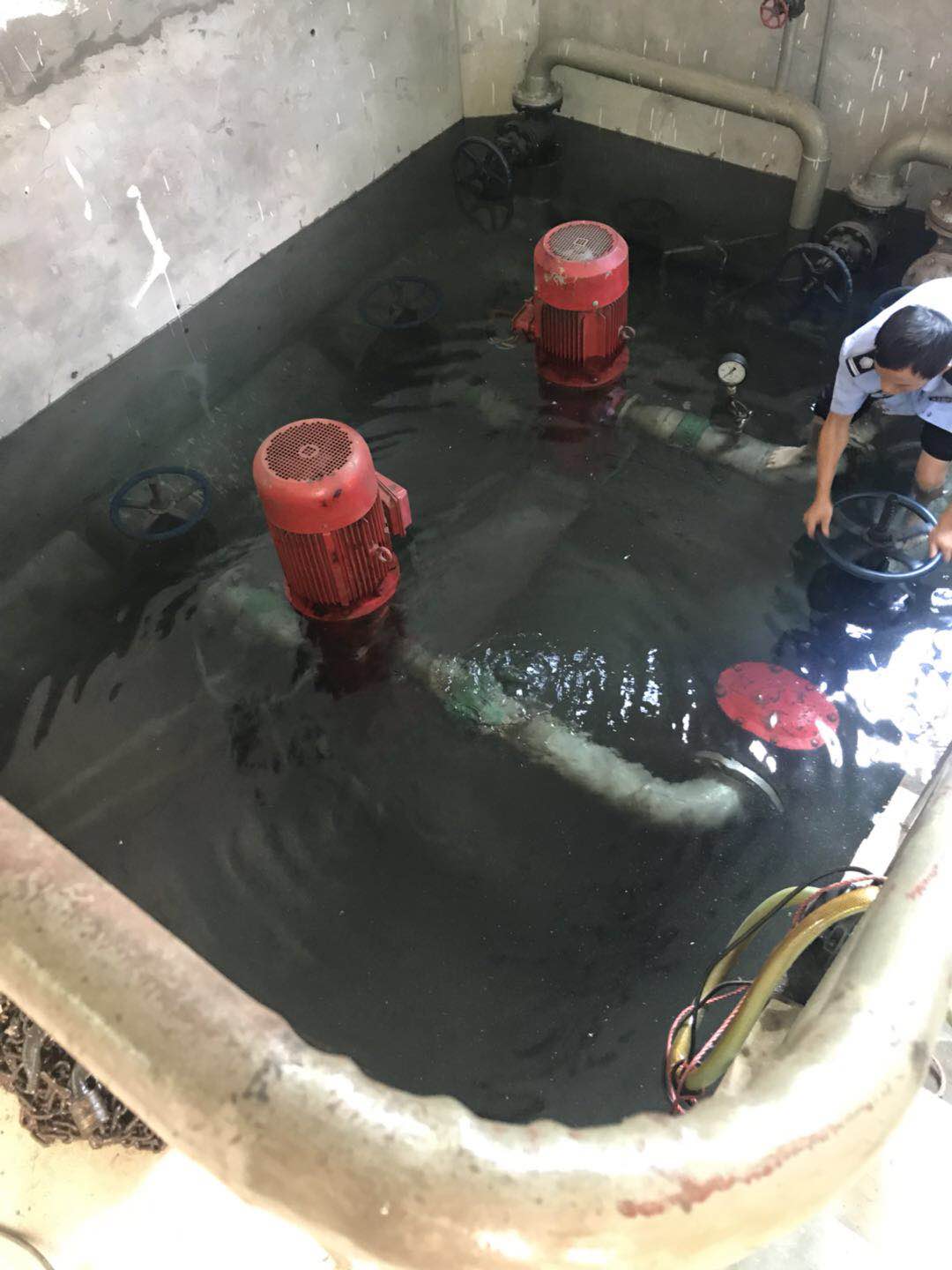 圖為執(zhí)勤隊(duì)員在關(guān)閉閥門 “看,應(yīng)該是這里漏水了,有水暈在動(dòng)。” “對(duì),就是這里了?!?/span> “水馬上要沒到電機(jī)了,趕快關(guān)閉閥門,不然損失就大了?!?/span> 此時(shí),陳旦平?jīng)]有多想,立即下水去關(guān)閉水泵閥門。池中有2號(hào)泵的高位水池閥門和2號(hào)泵的集水池閥門,每個(gè)泵各有兩個(gè)閥門。陳旦平在迅速關(guān)閉閥門后,由于集水池這邊地勢(shì)較低,慌忙中的他忘拿手機(jī),手機(jī)被水浸到,他卻依舊埋頭于搶修。 據(jù)隊(duì)長(zhǎng)李新波說,此次“水災(zāi)”是北泵房2號(hào)泵的壓力表處水管漏水,原因是設(shè)備設(shè)施使用時(shí)間較長(zhǎng),水管陳舊銹蝕,抵不住水壓,導(dǎo)致水管開裂,引起漏水。 胡瑰華