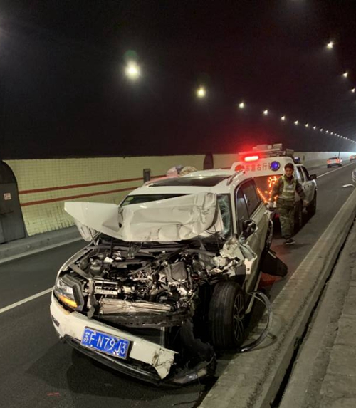 圖為事故現(xiàn)場 在很短的時(shí)間內(nèi),巡邏車就趕到現(xiàn)場。此時(shí)塘嶺隧道事故現(xiàn)場一片混亂,眾多車輛滯留。執(zhí)勤隊(duì)到達(dá)現(xiàn)場做好預(yù)警措施后,執(zhí)勤隊(duì)員勸離兩輛事故車駛往塘嶺隧道南廣場等候交警處理,引導(dǎo)擁堵車輛有序通行。巡邏車尾隨事故車輛,做好預(yù)警工作,緩慢駛向寧向隧道口。然而當(dāng)巡邏車行至寧向出口處,又有兩車發(fā)生追尾,被追尾車輛已是“體無完膚”,現(xiàn)場有大量的拋灑物,嚴(yán)重影響其他車輛通行,需拖車和清障車的救援,清障施救車輛也及時(shí)趕到,現(xiàn)場才恢復(fù)正常通車,此時(shí)距離第一起事故發(fā)生僅僅過去半個(gè)小時(shí)。 在此,臺(tái)州高速集團(tuán)溫馨提醒,雖然大家歸家心切,但是春運(yùn)期間高速車流量大,車速快,行車過程中盡量保持安全車距,避免人員傷亡和財(cái)產(chǎn)損失。 陳旦平