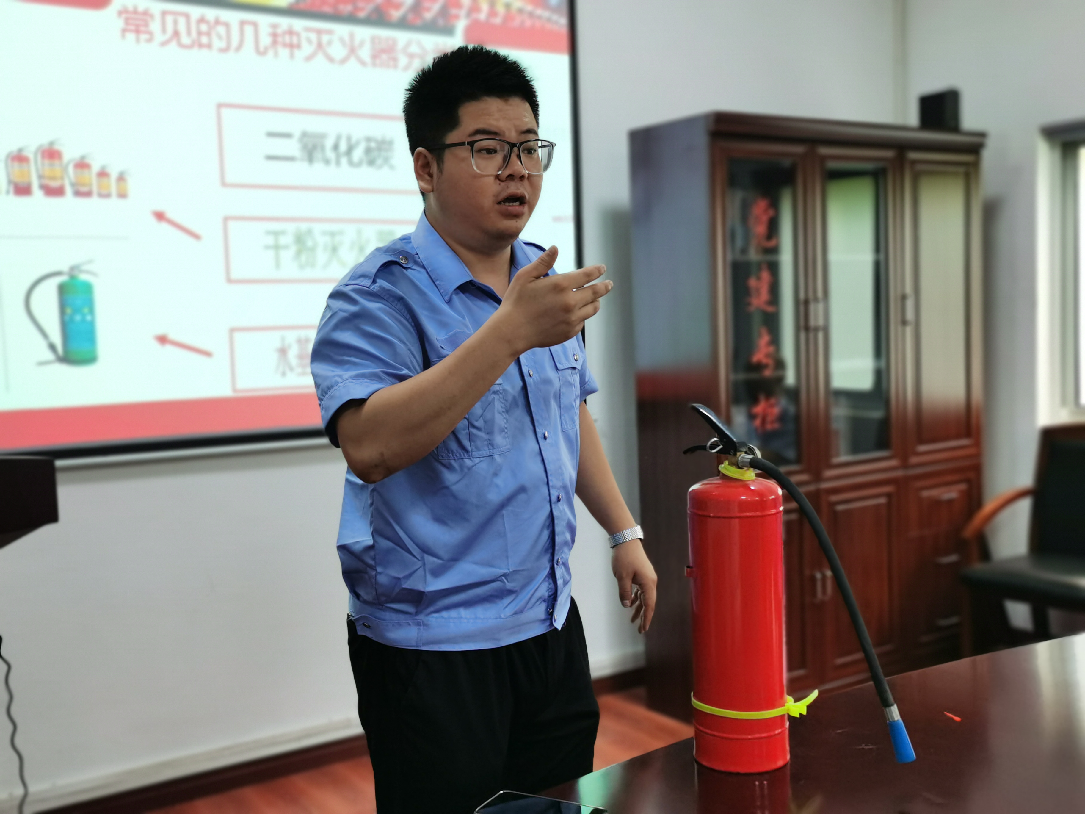 圖為楊金德示范滅火器操作方法 基于隧道所工作場(chǎng)所配備的二氧化碳和水基滅火器,楊金德再次示范了滅火器的操作方法,又介紹了水基本滅火器的工作原理,它在噴射后,成水霧狀,瞬間蒸發(fā)火場(chǎng)大量的熱量,迅速降低火場(chǎng)溫度,隔離氧氣,從而達(dá)到快速滅火的目的。 培訓(xùn)課中,一則則鮮活的案例警示大家,火災(zāi)之患不容忽視,安全生產(chǎn)要做到“防災(zāi)結(jié)合,預(yù)防為主”,火災(zāi)的初期是最佳救援時(shí)機(jī),家里、車上、單位都應(yīng)配備滅火器及其他滅火設(shè)備,而且還要會(huì)使用。不要讓屏幕上的悲劇多次重演,人人要時(shí)刻敲響安全警鐘, 陳智慧