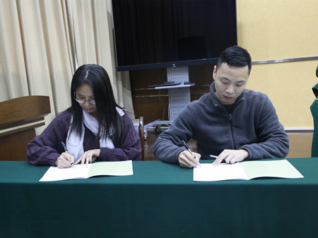 圖為部門負(fù)責(zé)人與部門員工簽訂綜治安全生產(chǎn)責(zé)任狀