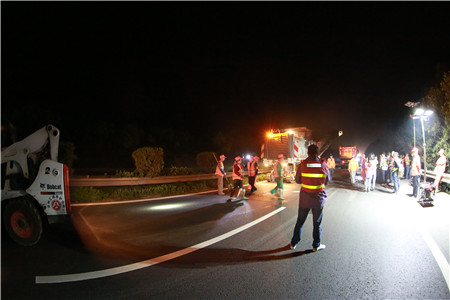 反復(fù)溝通,施工保質(zhì)保進(jìn)度。要在車(chē)流量極大的主干線(xiàn)上夜間順利施工,不僅對(duì)工程質(zhì)量、進(jìn)度負(fù)責(zé),更要對(duì)安全保暢負(fù)責(zé),不能有半點(diǎn)疏忽,不允許絲毫麻痹,而且涉及面極廣。不僅涉及工程部與施工監(jiān)理單位,更涉及到高速交警、路政及運(yùn)營(yíng)管理等多個(gè)部門(mén),前期工程部協(xié)交警、營(yíng)運(yùn)部、監(jiān)理、施工等各相關(guān)單位就施工方案反復(fù)論證,一次次的討論與交流,計(jì)劃改了又改,從提前發(fā)布公告到路口設(shè)立標(biāo)志,從預(yù)警車(chē)輛安排到分流時(shí)間節(jié)點(diǎn),從搶險(xiǎn)預(yù)案到應(yīng)急小分隊(duì)建立,路面的反復(fù)測(cè)量,綠化養(yǎng)護(hù)的同期推進(jìn).....千頭萬(wàn)緒,在于每一個(gè)細(xì)節(jié)的反復(fù)論證。一直到11號(hào)下午,確定了最合理有效的交通組織方案,施工前的安全和技術(shù)方面有了最后的交底,器械設(shè)備、材料、人員班組配備等一一清點(diǎn)得到最終確認(rèn)。