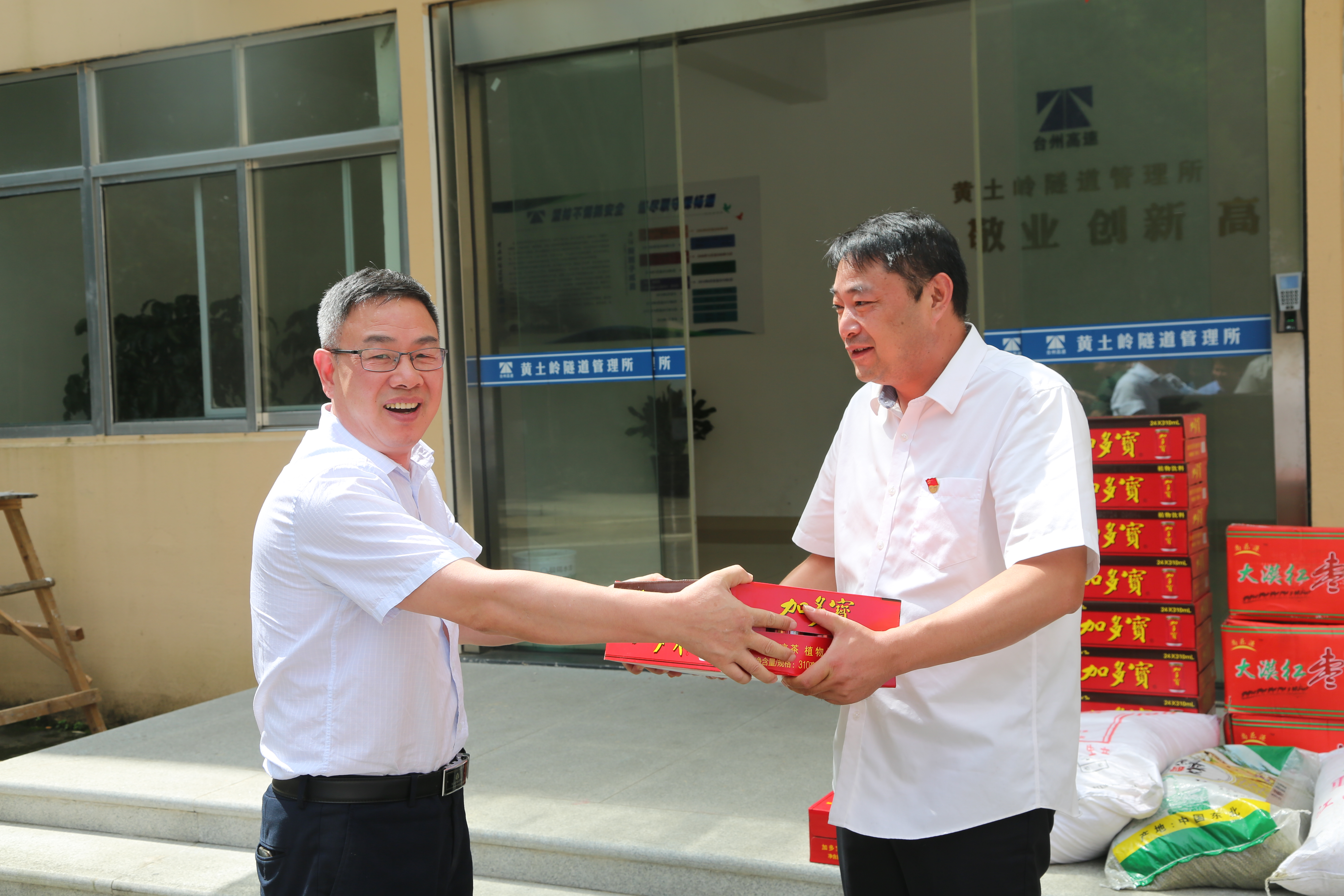 “這么熱的天氣,大家都辛苦啦!感謝你們的辛苦付出,高溫工作,一定要注意避免中暑?!奔瘓F副總經(jīng)理陳保衛(wèi)、羅小將、工會主席項義超、征費部負責人等相關(guān)人員,到房產(chǎn)公司、大溪嶺隧道所、溫嶺西、臺州南等收費所,為一線員工送上消暑物資,慰問堅守在酷暑下的工作人員。