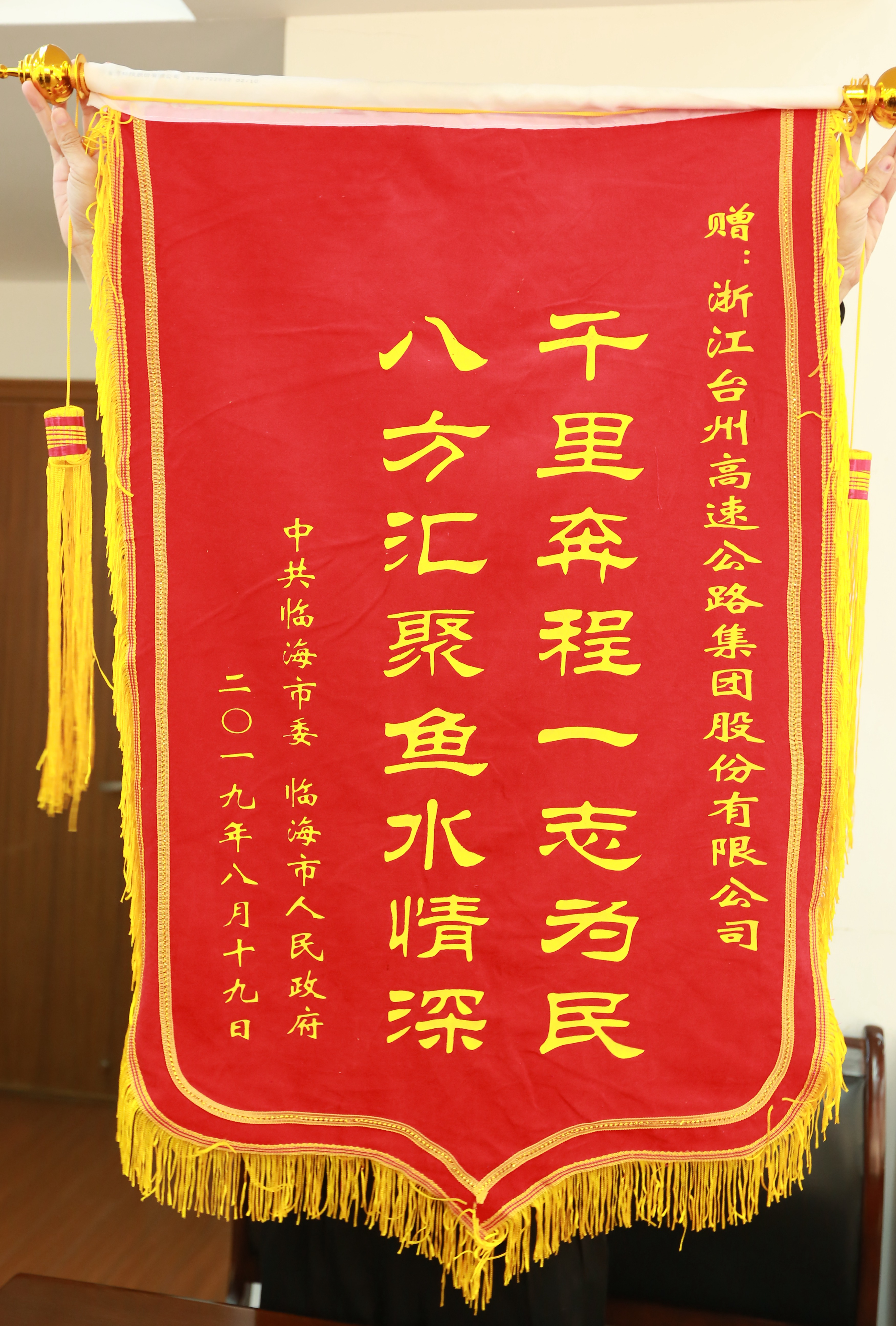 【洪水無(wú)情人有情】臨海市給臺(tái)州高速集團(tuán) 送來(lái)錦旗和感謝信 今天下午,臨海市市長(zhǎng)王丹代表臨海市委、市政府向臺(tái)州高速集團(tuán)送來(lái)了錦旗和感謝信,感謝在防御第9號(hào)臺(tái)風(fēng)“利奇馬”及災(zāi)后重建過(guò)程中,臺(tái)州高速集團(tuán)給予的大力支援。