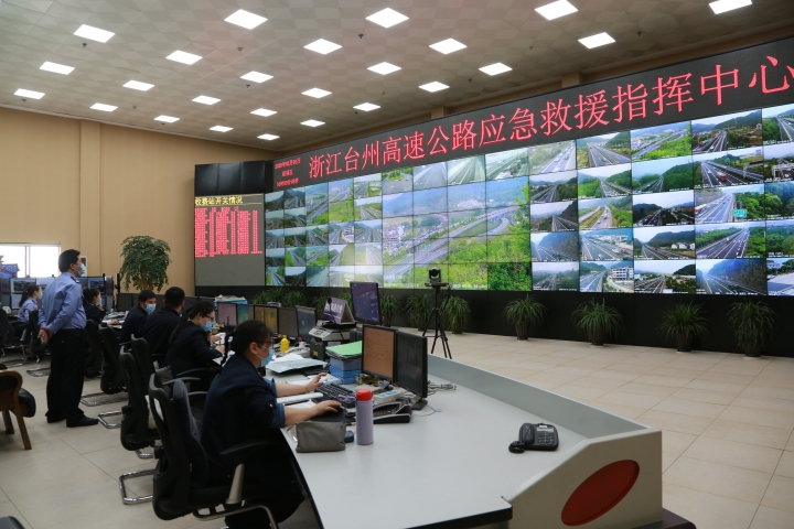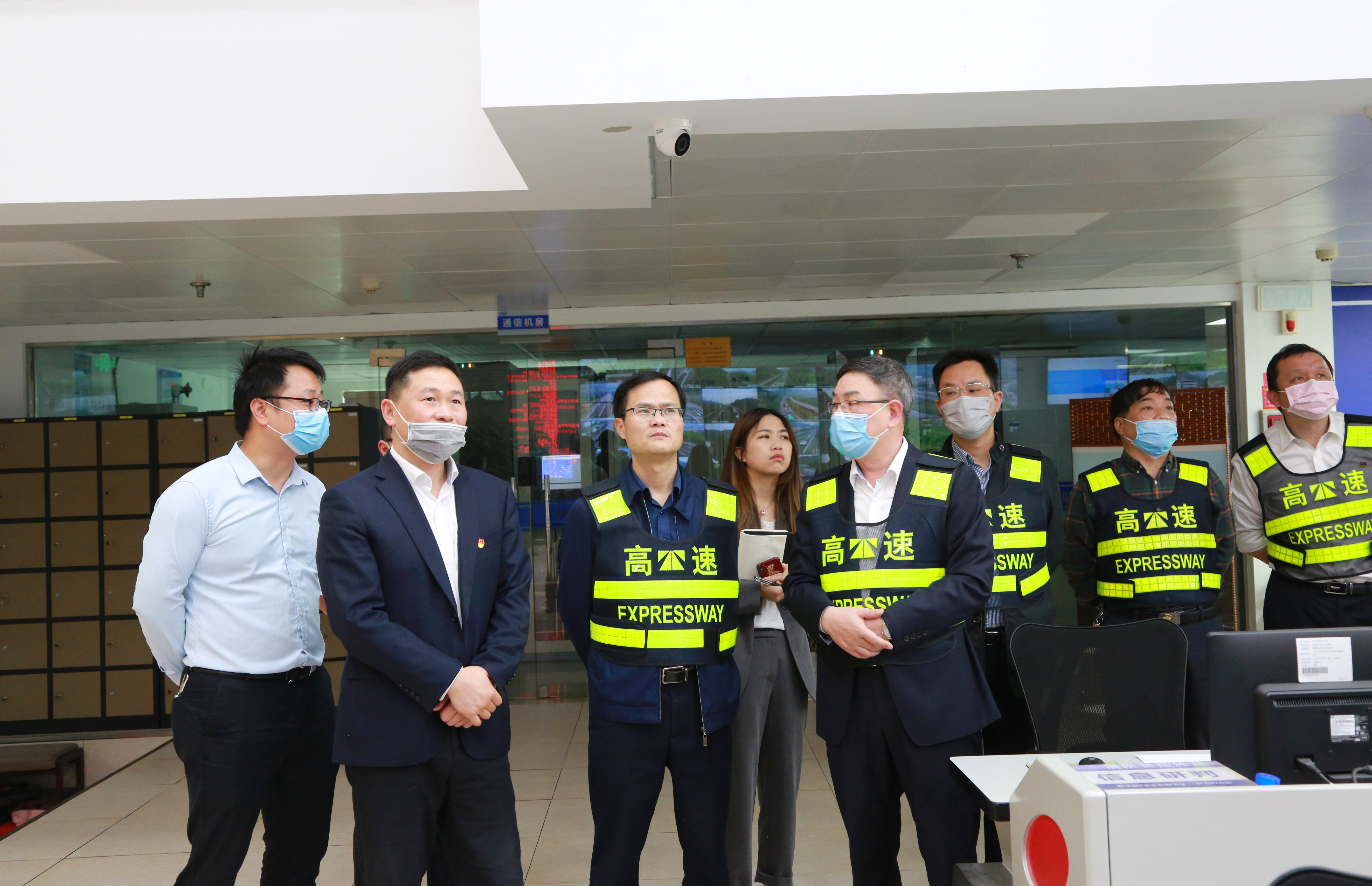 圖為金寶敏一行檢查臺(tái)州高速公路應(yīng)急救援指揮中心