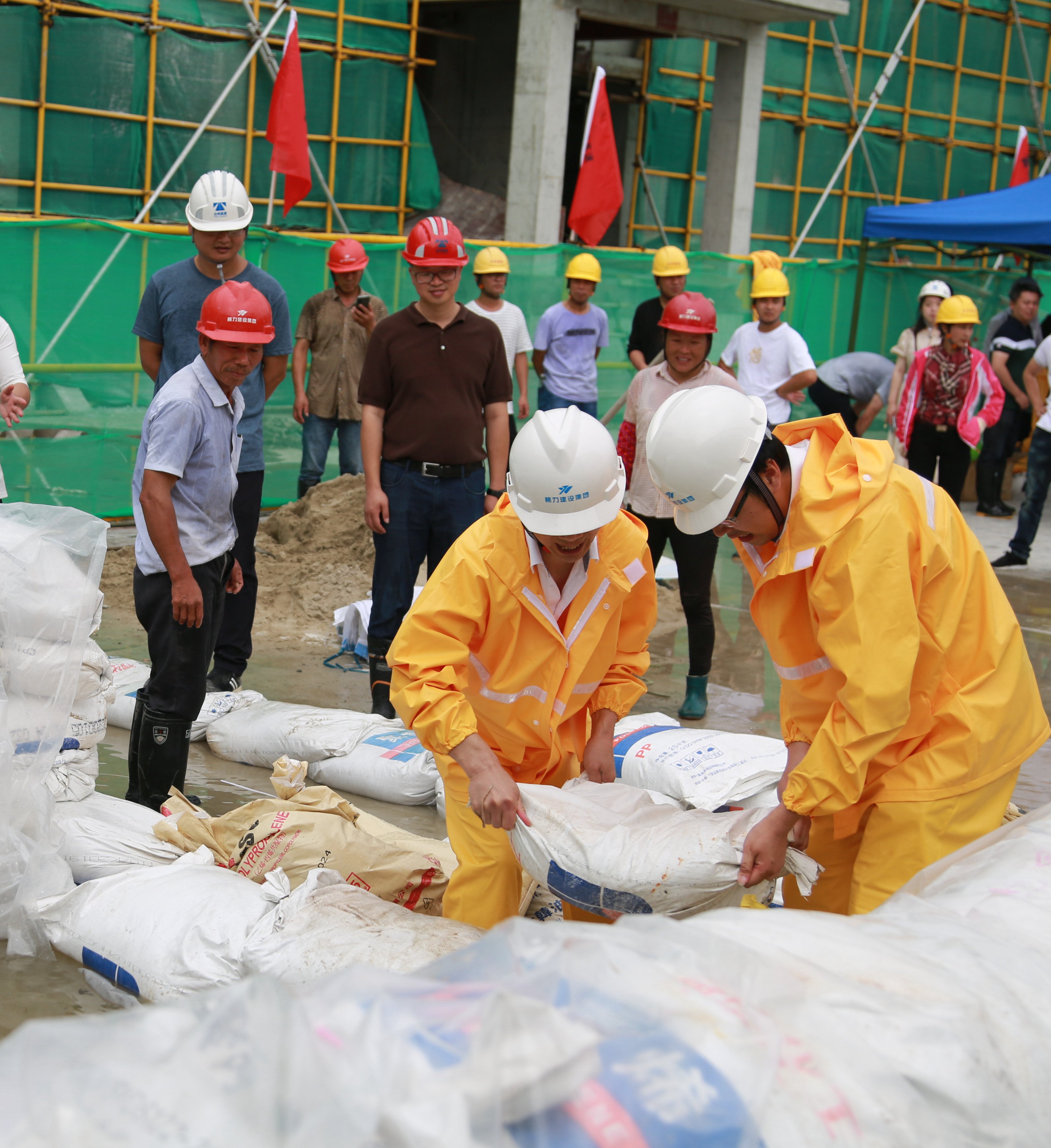 圖為模擬建筑工地面對(duì)洪水倒灌的現(xiàn)場(chǎng)應(yīng)急搶險(xiǎn)