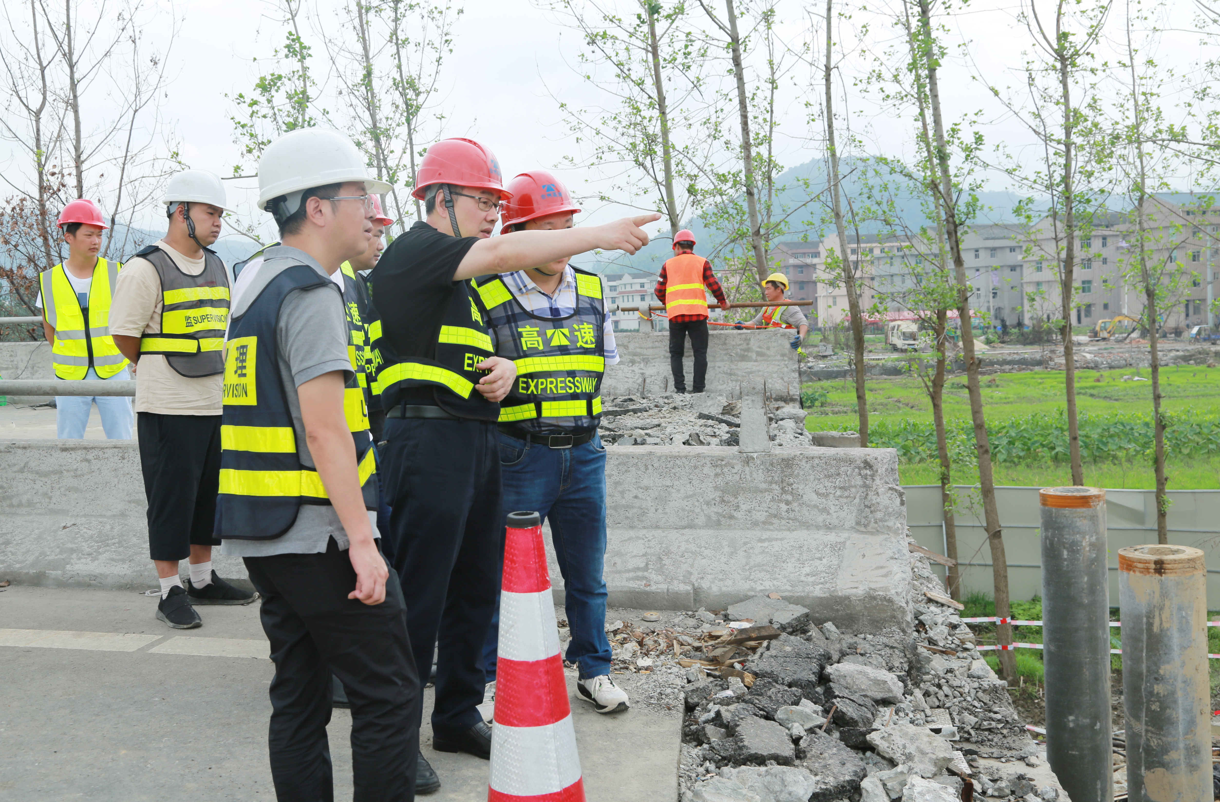 圖為陳文波提出有關施工要求 在施工現場,陳文波在向相關人員詳細詢問工程作業(yè)等情況后強調,要確保安全。時刻繃緊安全這根弦,特別是機械作業(yè)危險性較大,要嚴格按照操作規(guī)范進行施工,工人要嚴格做好防護措施。要保證質量。施工方要嚴格按照技術要求進行施工,監(jiān)理方嚴格按照規(guī)范進行監(jiān)督,確保橋梁維修高標準完成竣工。要搶抓進度。時間就是效益,工程部要每天安排人員進行值班,做好現場的監(jiān)督和協(xié)調。確保工程按照計劃有序推進,保質保量完成匝道橋梁維修工程,為溫嶺西收費站早日全面恢復通車做出貢獻。 包啟曉