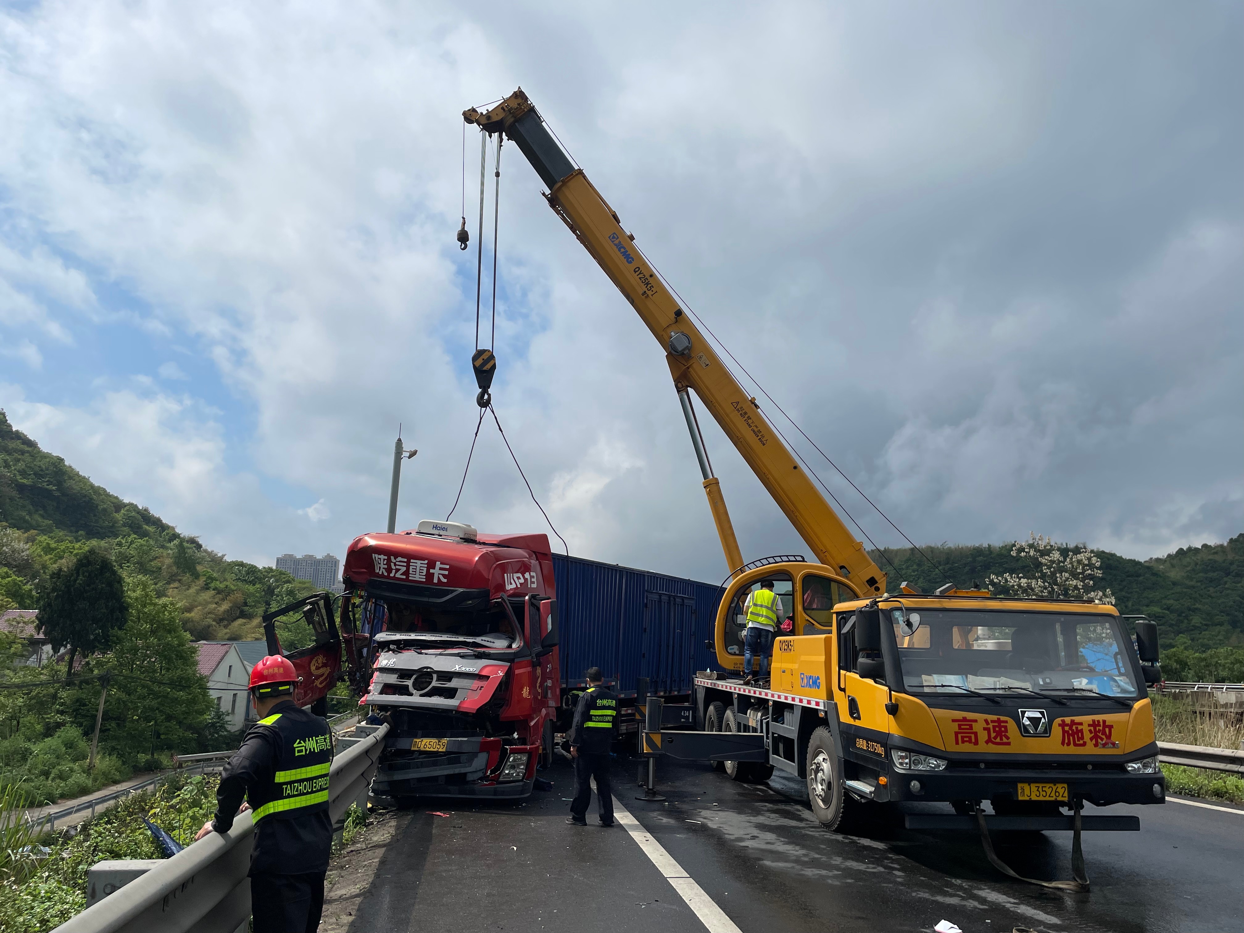 聽到巨響的黃土嶺隧道所工作人員立刻提高警惕,啟動(dòng)應(yīng)急預(yù)案,所負(fù)責(zé)人應(yīng)錦清帶領(lǐng)執(zhí)勤隊(duì)員迅速出動(dòng)到達(dá)事故現(xiàn)場(chǎng),執(zhí)勤隊(duì)員第一時(shí)間在事故車后方預(yù)警,以防二次事故。因大貨車車身橫在路面,可通行的道路僅留2米多寬,周圍一下子便開始擁堵。執(zhí)勤隊(duì)、施救人員聯(lián)合高速交警指揮交通,讓后方無(wú)法通行的貨車暫時(shí)排在一側(cè),保證后續(xù)救援暢通。