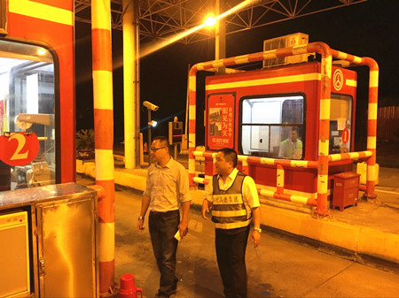 公司副總經(jīng)理章海峰深夜到臺州南收費所檢查