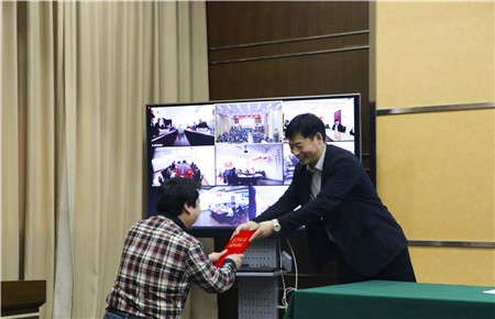 圖為集團副總經(jīng)理陳保衛(wèi)為“2017年全市交通建設(shè)先進個人”何翔頒獎