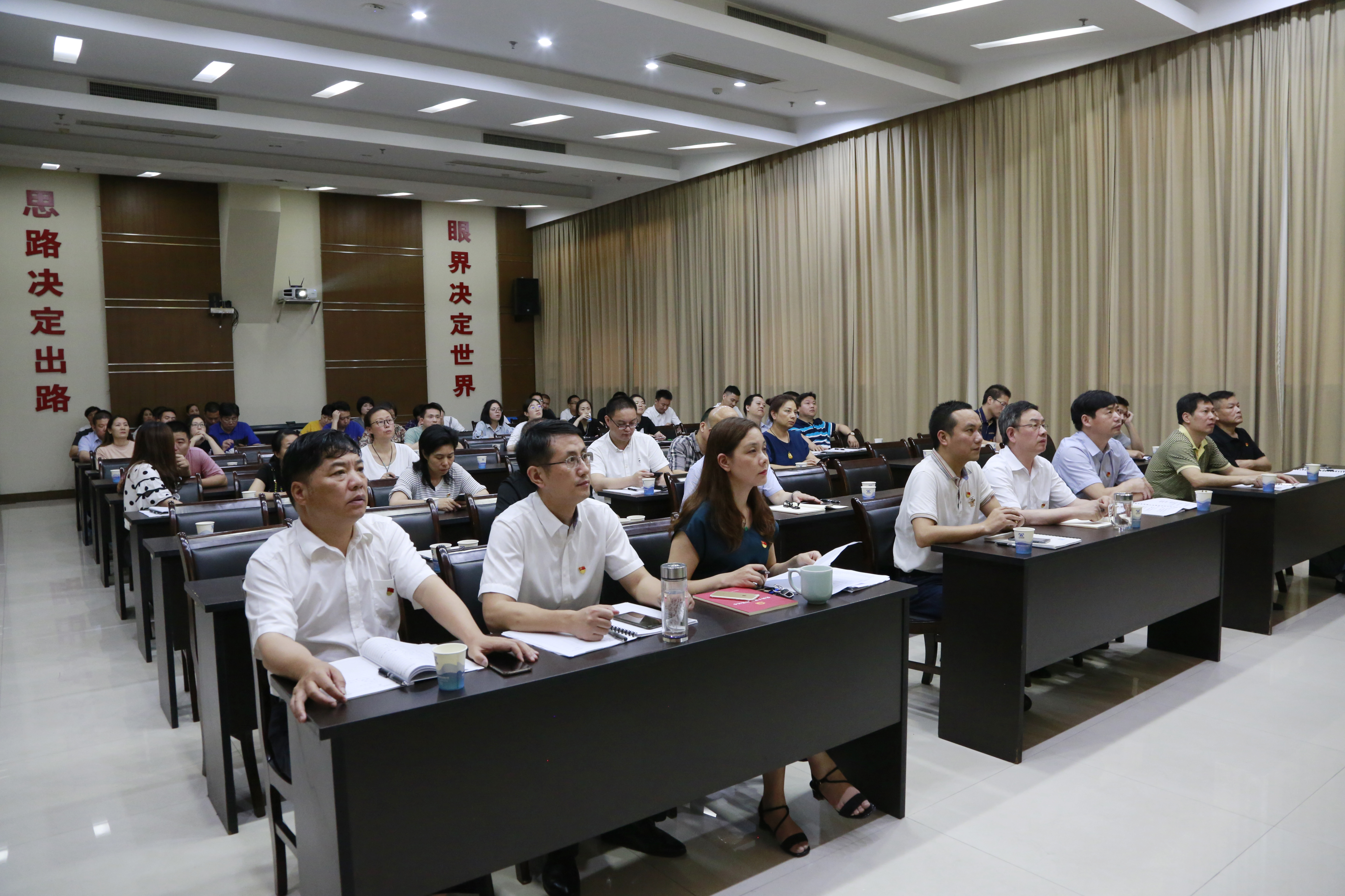 圖為參加學(xué)習(xí)的領(lǐng)導(dǎo)干部職工 隨后,全體人員集體觀看了臺州市委、市監(jiān)委近期聯(lián)合拍攝的反腐記錄片《禍階》?!度龂尽分性?/span>“貪而棄義,必為禍階”。紀錄片中一個個發(fā)生在我們臺州的身邊案例,直白地說明了什么叫“貪而棄義,必為禍階”。這些人在走向犯罪道路的過程中,都存在不注重世界觀、人生觀和價值觀的改造,理想信念滑坡,私欲膨脹,背棄共產(chǎn)主義理想和黨的宗旨,人生觀、價值觀偏離了正確方向,道德觀念失衡,把國家和人民賦予的神圣權(quán)力,當成了謀取不義之財,謀取私利的工具,政治上喪失信念、經(jīng)濟上貪得無厭、生活上腐化墮落等問題。 章彩霞在會后指出,“以史為鏡,可以知興替;以人為鏡,可以知得失”。工作中,我們要以案為鑒,警鐘長鳴,隨時提醒自己不可重蹈覆轍。 毛宇航