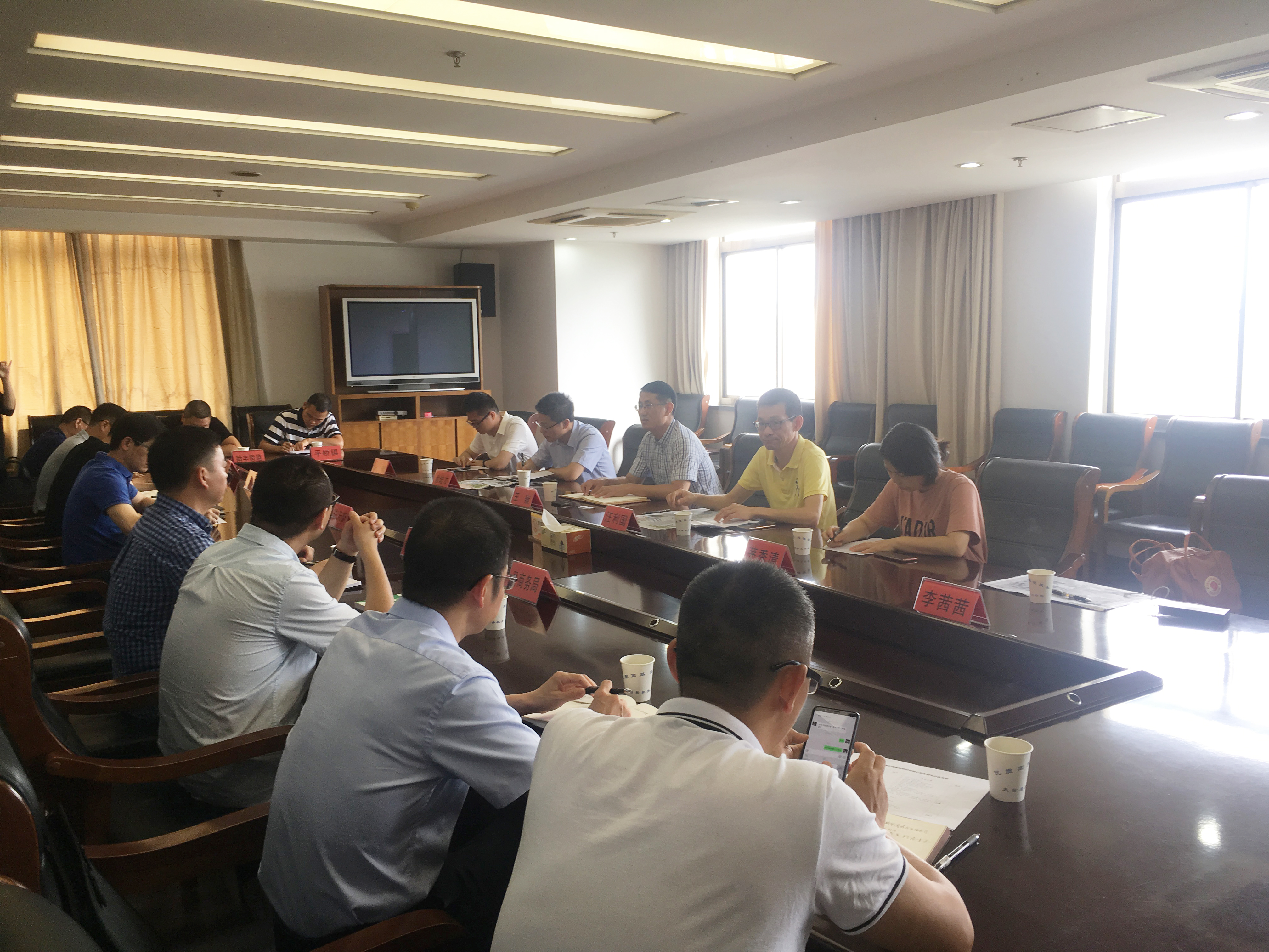 圖為項(xiàng)目接洽會(huì) 當(dāng)天上午,天臺(tái)縣人民政府付縣長陳天新召集縣商務(wù)局、住建局、基投公司、始豐街道、平橋鎮(zhèn)等相關(guān)負(fù)責(zé)人在縣政府大樓召開項(xiàng)目接洽會(huì),參會(huì)各單位分別介紹了所屬地塊的詳細(xì)情況,并對(duì)考察組所關(guān)心的相關(guān)問題進(jìn)行解答。