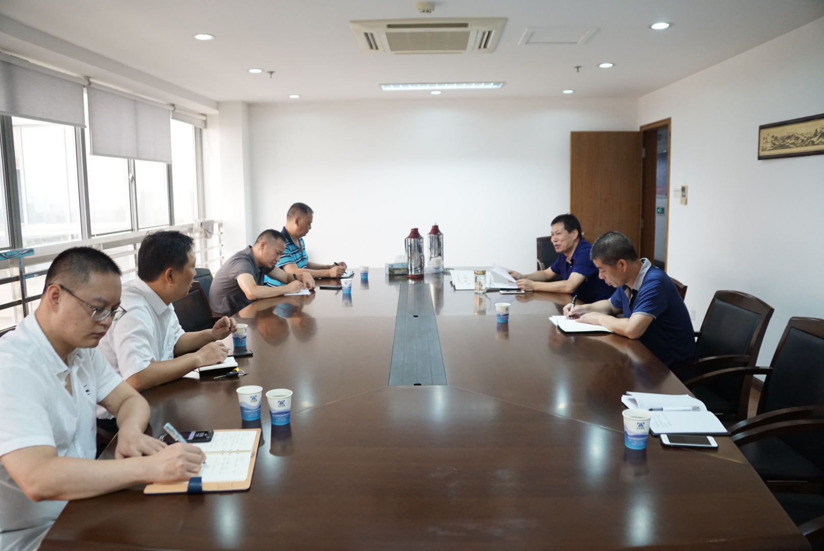 圖為會(huì)議現(xiàn)場(chǎng) 參會(huì)人員就集團(tuán)沿線收費(fèi)所入口稱重檢測(cè)設(shè)備系統(tǒng)建設(shè)方案的合理性展開(kāi)了討論,并結(jié)合集團(tuán)各收費(fèi)所現(xiàn)場(chǎng)實(shí)際情況、實(shí)施難度及日后管理維護(hù)等方面,對(duì)方案中各所對(duì)應(yīng)將采取的超限檢測(cè)形式(入口車道軸重式、連接線軸重式、廣場(chǎng)軸重式)進(jìn)行分析,明確其合理性,表示有異議的部分將及時(shí)向設(shè)計(jì)院反饋。 章海峰表示,相關(guān)人員要盡快與設(shè)計(jì)院對(duì)接,進(jìn)一步開(kāi)展現(xiàn)場(chǎng)調(diào)研,綜合考慮各項(xiàng)因素,明確最合理的實(shí)施方案,為項(xiàng)目實(shí)施奠定扎實(shí)的基礎(chǔ),全方位狠抓落實(shí),確保按期保質(zhì)完成入口治超工作。 李夢(mèng)君