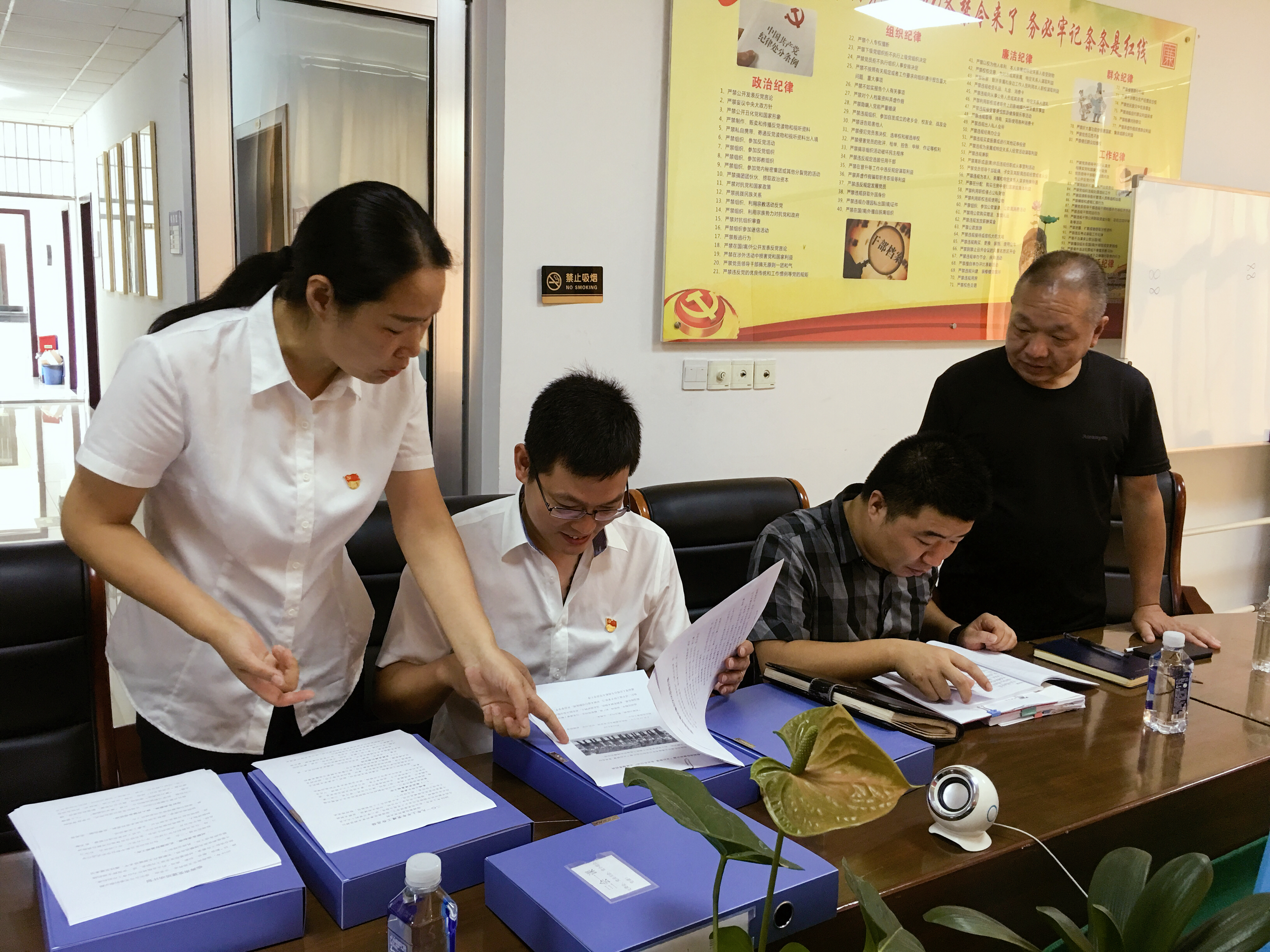 圖為檢查組對支部臺賬進(jìn)行檢查 檢查組仔細(xì)查看了各支部黨建、黨風(fēng)廉政臺賬資料和學(xué)習(xí)記錄,還對黨支部三會一課制度執(zhí)行情況、主題黨日開展情況、一支部一品牌工作落實(shí)、廉政文化示范點(diǎn)創(chuàng)建等工作進(jìn)行了重點(diǎn)檢查。檢查中發(fā)現(xiàn)部分支部存在有臺賬不夠規(guī)范、主題黨日活動主題不明確等問題,檢查組當(dāng)即對存在的問題現(xiàn)場指出,要求限期整改。檢查組還在現(xiàn)場對黨員干部應(yīng)知應(yīng)會知識進(jìn)行抽查。 曾莉莉