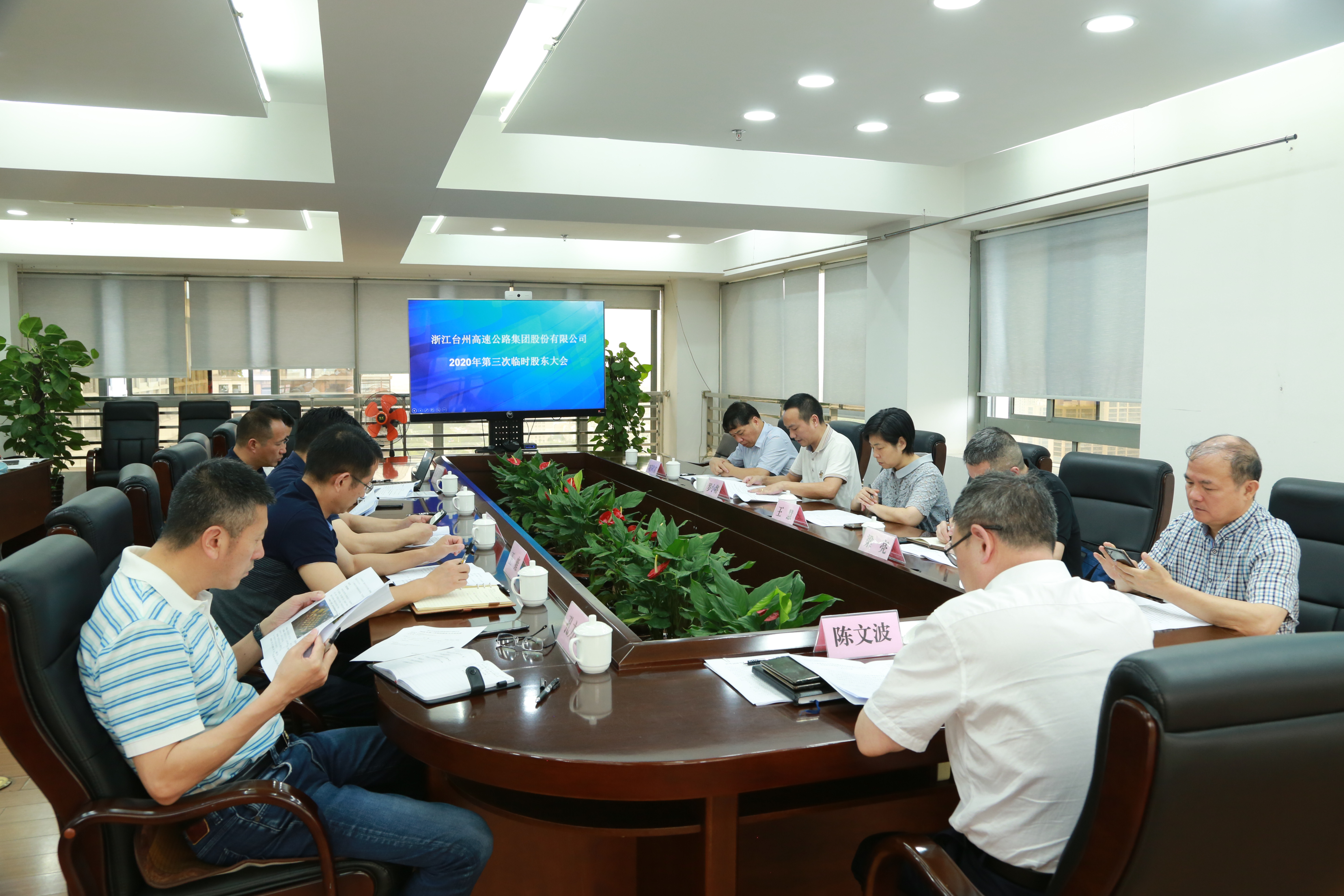 圖為陳文波主持會(huì)議 大會(huì)由公司黨委書(shū)記、董事長(zhǎng)、總經(jīng)理陳文波主持,公司董事、監(jiān)事和高管人員出席大會(huì)。 大會(huì)經(jīng)鼓掌表決推舉了監(jiān)票人、計(jì)票人,經(jīng)記名投票表決通過(guò)《關(guān)于高速房產(chǎn)公司參與黃巖區(qū)東城街道印山路西側(cè)、二環(huán)南路北側(cè)地塊(臺(tái)土告字[2020]028號(hào))競(jìng)拍的議案》。本次股東大會(huì)各項(xiàng)議案均獲通過(guò),同意各項(xiàng)議案的表決股數(shù)占出席會(huì)議所有股東所持表決權(quán)的100%。