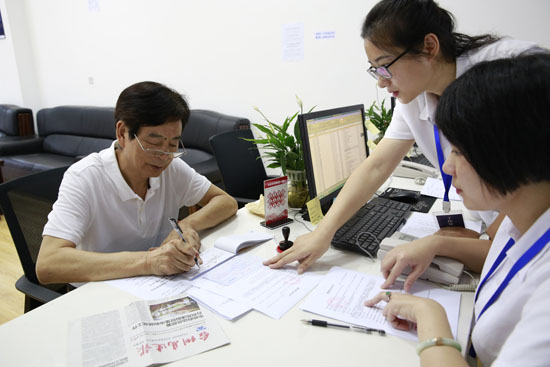 據(jù)椒江收購點(diǎn)工作人員朱海燕介紹,集團(tuán)高齡股東較多,如果他們前來辦理,工作人員會及時(shí)上前攙扶股東到審核區(qū)坐下,核對股東是否確權(quán),審核身份證、銀行卡等資料,如果一切無誤便直接帶領(lǐng)股東到辦理區(qū)。