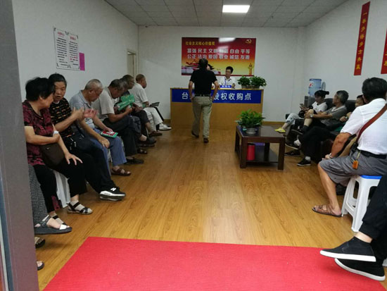 “大爺!你好!您請坐!”收購點(diǎn)的工作人員忙著接待各位股東,集團(tuán)總經(jīng)理張建平來到股權(quán)椒江收購點(diǎn)親自為股東服務(wù),為股東遞上各種股權(quán)轉(zhuǎn)讓資料。集團(tuán)其他領(lǐng)導(dǎo)班子分別赴各個(gè)收購點(diǎn)檢查指導(dǎo),確保啟動(dòng)日順利開展收購工作。