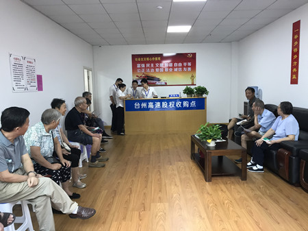 各收購點從一開始接收的第一筆股份轉(zhuǎn)讓,到現(xiàn)在大大小小股份協(xié)議書的簽訂,形形色色的股東都表示很支持和理解臺州高速股權(quán)收購工作,相繼前來轉(zhuǎn)讓股份。有的股東在轉(zhuǎn)了自己的股權(quán)后又立馬發(fā)動親戚好友前來辦理轉(zhuǎn)讓;有的近90歲高齡了還親自到收購點,耐心聽工作人員講解細節(jié)內(nèi)容;有的稱多出的十多倍收益為意外之喜;有的甚至悔恨當(dāng)年為何不多將資金投到臺州高速……可愛可敬的臺州高速股東們!