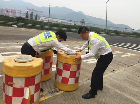 公司沿線四個收費站平穩(wěn)實現(xiàn)路面養(yǎng)護(hù)施工期入口轉(zhuǎn)換 因G15沈海高速臺州段于2017年10月28日零時至11月16日24時封閉施工,施工期間,公司所轄路段溫嶺西、臺州南、臺州、臨海南實行交通管控,公司沿線各收費站、工程和交警、臺州市公路局等部門單位緊密配合,多措并舉,平穩(wěn)實現(xiàn)收費站入口轉(zhuǎn)換。 為配合公司道路養(yǎng)護(hù)和黃土嶺右洞改造施工,公司征費系統(tǒng)提前在各收費站入口LED屏上發(fā)布施工信息,連夜安排趕印50000份施工公告發(fā)放至四個收費所,提醒過往司乘人員提前規(guī)劃施工期間的出行路線。