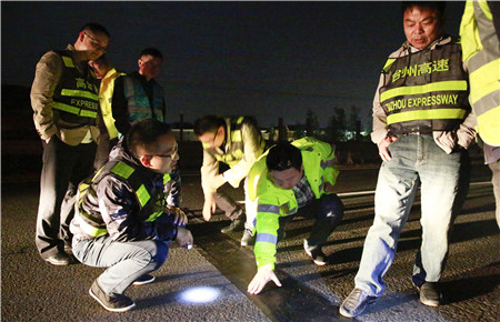 圖為何翔和同事們檢驗(yàn)伸縮縫新修補(bǔ)處