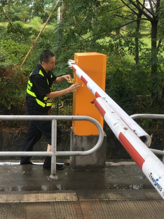 圖為工作人員在對欄桿機作防水處理 加強應急值守確保信息暢通。在防臺期間,中心實行常規(guī)值班和應急值班雙值班制,嚴格落實24小時應急制度。要求全體人員密切關(guān)注與“利奇馬”有關(guān)的信息,隨時掌握臺風動態(tài)和道路狀況,加強與收費站、隧道所的溝通協(xié)作,實現(xiàn)信息及時共享,一旦出現(xiàn)緊急情況,要迅速啟動應急預案,有條不紊開展應急處置工作,確保高速公路安全暢通,最大限度避免和減少人員財產(chǎn)損失。 項寅曉