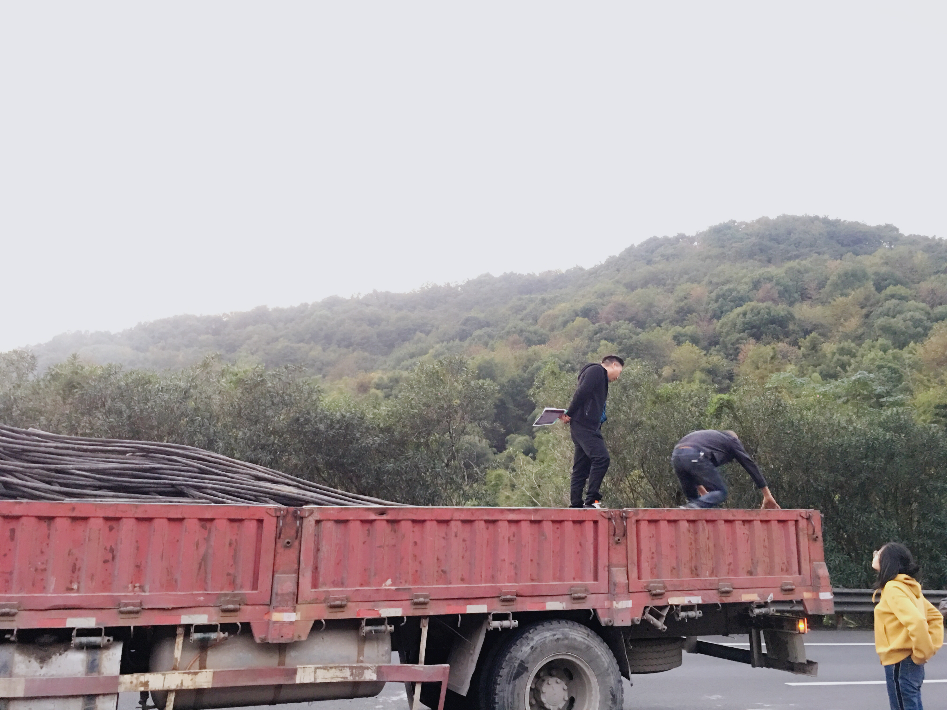 下午4:00,隧道外的小電纜已經(jīng)裝好,經(jīng)施工隊提醒,黃土嶺隧道內(nèi)還有拆下來的電纜,考慮到不給施工方添麻煩,小分隊3人在黃土嶺隧道廣場等候,資產(chǎn)管理部林軍叮囑收購方只要將隧道內(nèi)同類的小電纜裝上車即可。 下午5:10,裝舊電纜的車輛打算開往院橋磅秤站時,經(jīng)檢查發(fā)現(xiàn)裝貨人員將大電纜誤裝上了車,收購老板說:“都裝上車了,大電纜沒幾根,就按100m算吧。”小分隊堅持原則,拒絕了老板的估算。而四五噸的電纜,一卸一裝起碼要3個小時,眼看天快黑了,林軍想到了個辦法,通過整車過磅,取出大電纜,測量出米數(shù),再根據(jù)每米的重量算出價格,最后整車重量減掉大電纜重量就是小電纜的重量,大家一致通過。 傍晚6:00,卸小電纜,取大電纜,測量長度、記錄米數(shù),燈光不夠亮,大家手機(jī)手電筒來湊,饑餓、灰塵、危險已經(jīng)拋之腦外,小分隊奔波在幾噸的電纜中,看著,測著,記著。 晚上8:00,分類、測量、換算完畢,通過大家的努力,終于量出了大電纜共240m,挽回差價 1萬元多。 曾莉莉