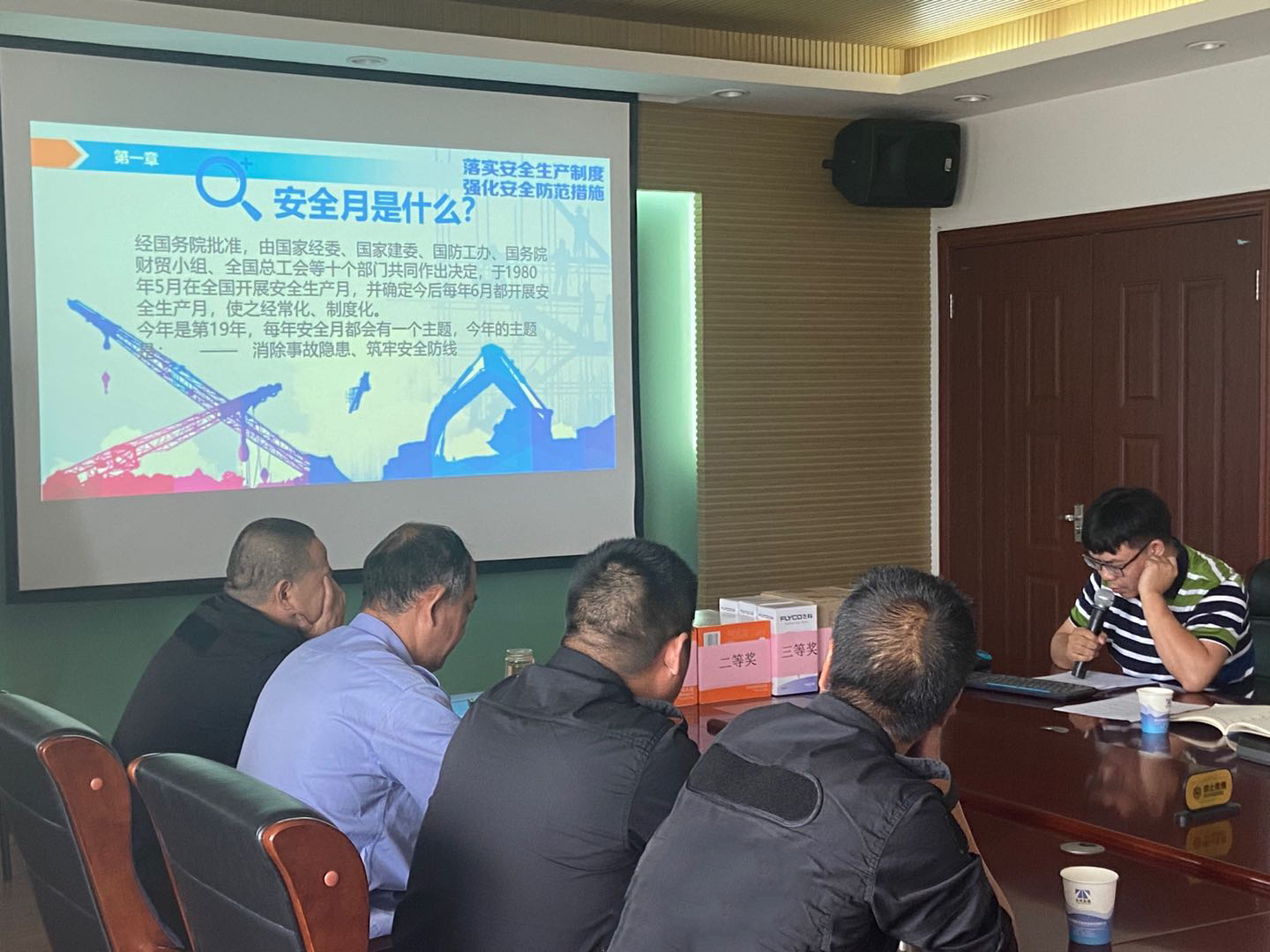 圖為中心員工宣講有關(guān)安全知識(shí) 安全知識(shí)講座由中心自行發(fā)動(dòng)員工進(jìn)行宣講,內(nèi)容涵蓋日常安全和工作安全,其中主要講了野外安全、火災(zāi)逃生、交通安全、急救知識(shí)和施救安全等,講座通過(guò)PPT的形式展開(kāi),圖文并茂,生動(dòng)豐富,并具有大量與員工進(jìn)行互動(dòng)的內(nèi)容。互動(dòng)提高了員工的積極性,營(yíng)造了良好的安全氛圍。 在安全知識(shí)講座后,中心在會(huì)議現(xiàn)場(chǎng)舉行了一場(chǎng)安全知識(shí)競(jìng)賽。競(jìng)賽以個(gè)人名義參賽,采取搶答形式,內(nèi)容涉及日常安全道路救援、安全制度等。競(jìng)賽中大家積極參與,踴躍搶答。經(jīng)過(guò)激烈的角逐,最后陶淘等六人分獲一二三等獎(jiǎng)。 項(xiàng)同富對(duì)此次競(jìng)賽給予高度肯定,為中心獲獎(jiǎng)員工頒獎(jiǎng),并對(duì)中心的安全工作和其他一些工作提出了建議和要求。他指出,安全只有0分和100分,并要求大家把安全工作做細(xì)做到位,切實(shí)做到消除事故隱患,筑牢安全防線。 王凱