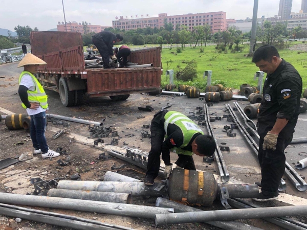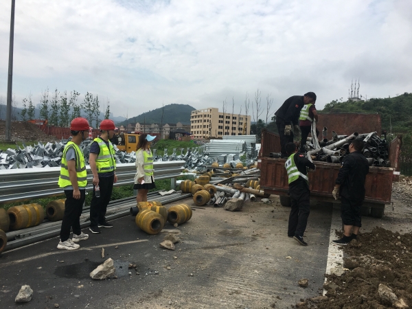 公司多部門聯(lián)合處置廢舊物資 7月27日,為協(xié)助工程部開展6.13浙江溫嶺槽罐車爆炸事故受損路段維修,盡早恢復通行。資產(chǎn)管理部在本月第二次聯(lián)合工程部、計財部、監(jiān)察室對公司路損防撞護欄板及立柱等廢舊物資進行處置。
