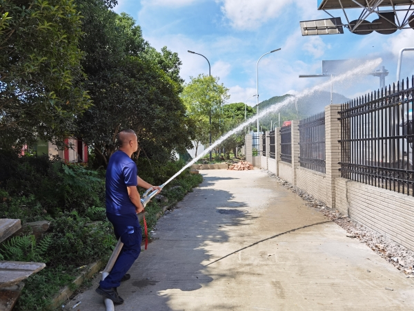 可是,蜜蜂不除去,車道無(wú)法安全通行,所里電話求助消防官兵。消防官兵采用高壓水槍沖洗被蜜蜂占領(lǐng)的區(qū)域,行政人員便配合他們?cè)俅?/span>利用殺蟲劑噴殺四處飛舞的蜜蜂,尤其是它們的“老巢”。前后經(jīng)過半小時(shí)的努力,數(shù)千只蜜蜂終于被成功驅(qū)散,被侵占的車道重新開啟。