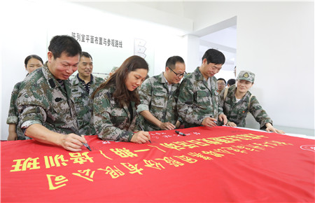 圖為集團領(lǐng)導(dǎo)在活動橫幅上簽字留念